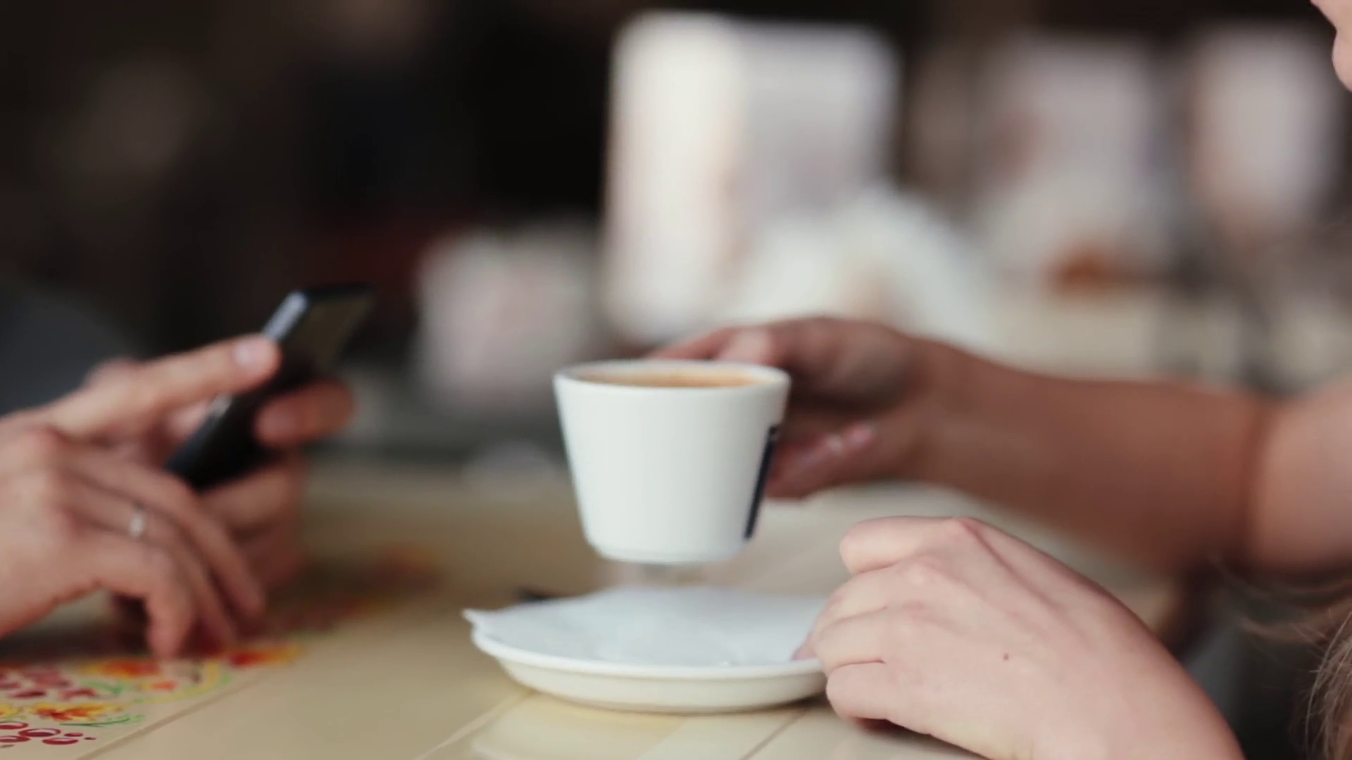 Young Woman Enjoying Coffee Man Using SmartphoneÂ