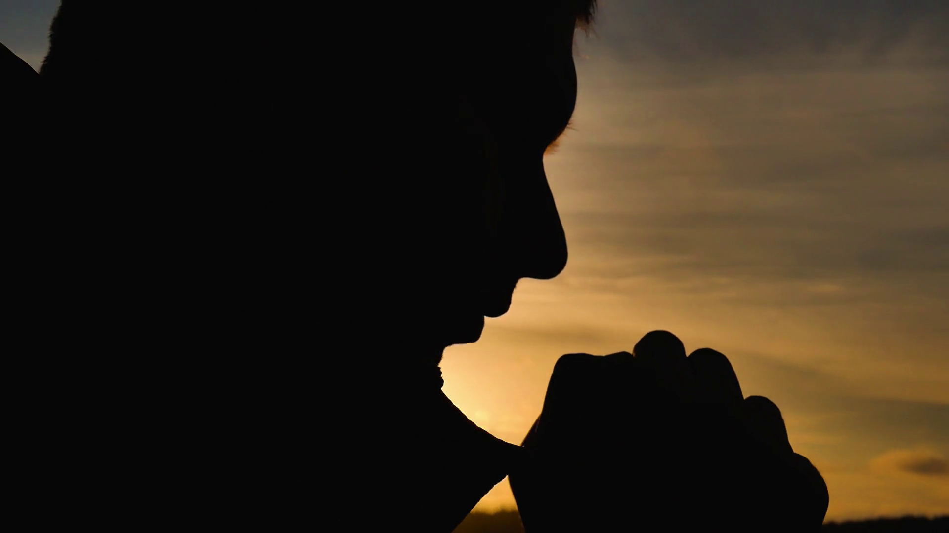 Silhouette Of A Man Praying At Sunset Concept Of Religion Silhouette Man Close Up Praying With Sunset BackgroundÂ