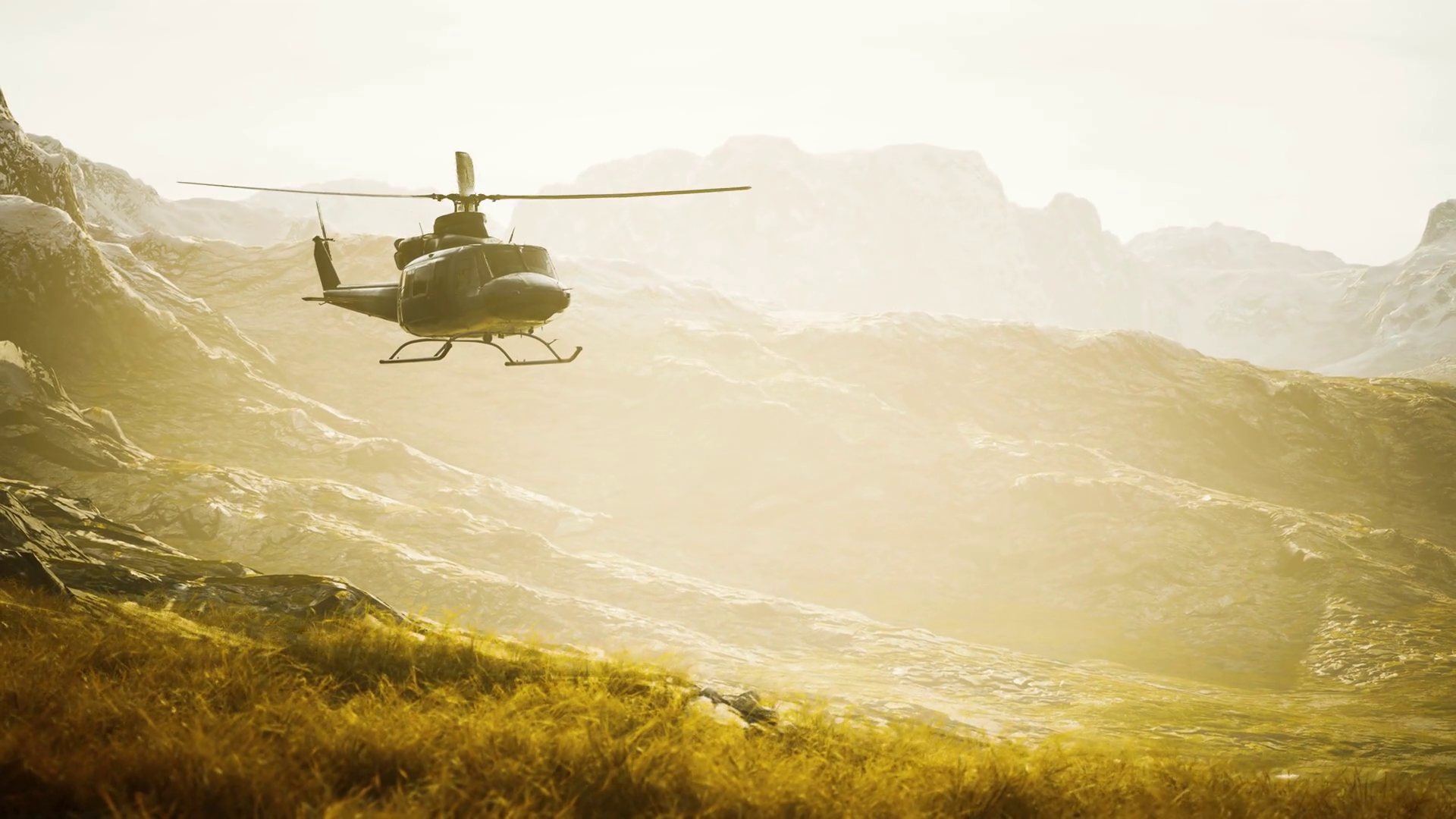 Slow Motion Vietnam War Era Helicopter In MountainsÂ