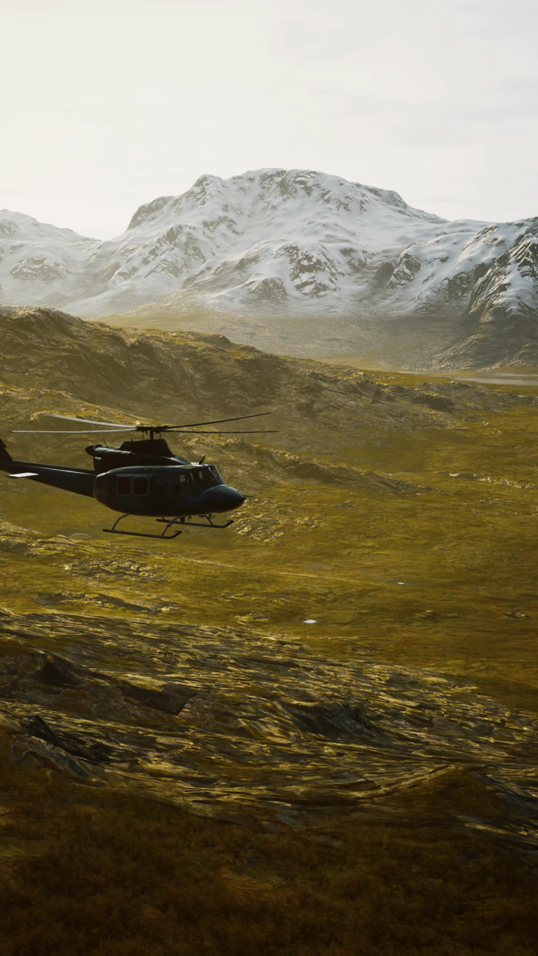 Slow Motion Vietnam War Era Helicopter In MountainsÂ