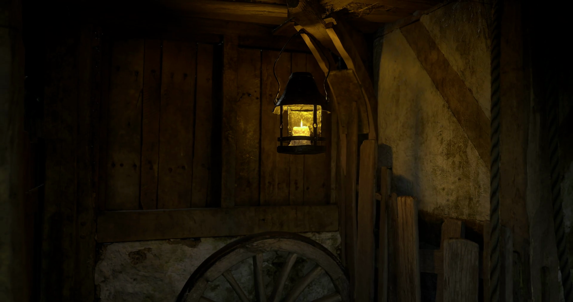 Soft Glow Of Lantern Illuminating Rustic Wooden Cabin Interior In The Evening
