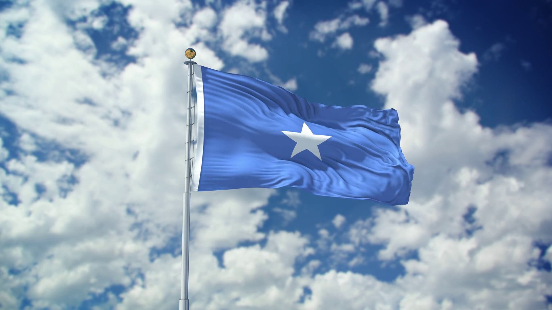 Somalia Realistic Waving Flag On Blue Sky Background With Clouds