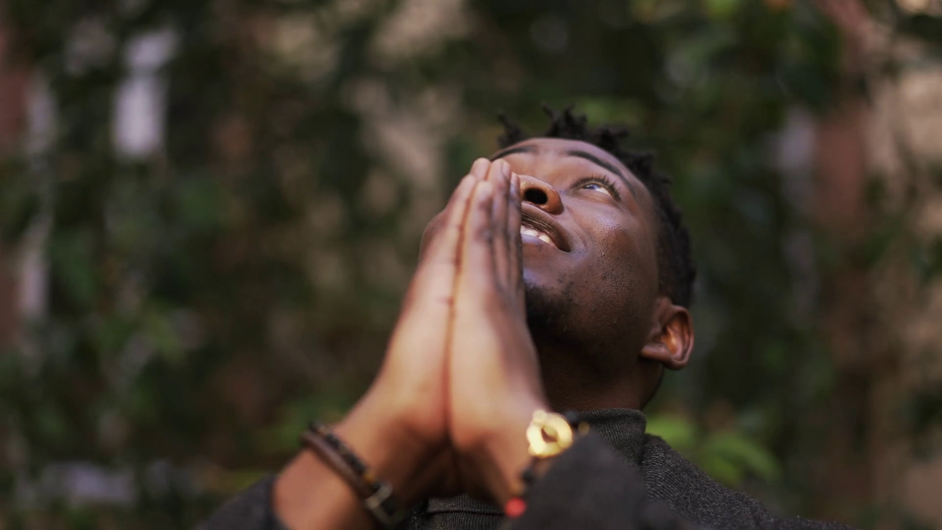 Spiritual Black African Praying Looking Up At Sky Seeking GodÂ