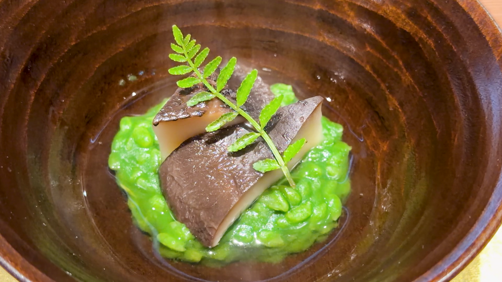 Steaming Hot Shiitake Mushroom And Green Pea Puree In Clay BowlÂ