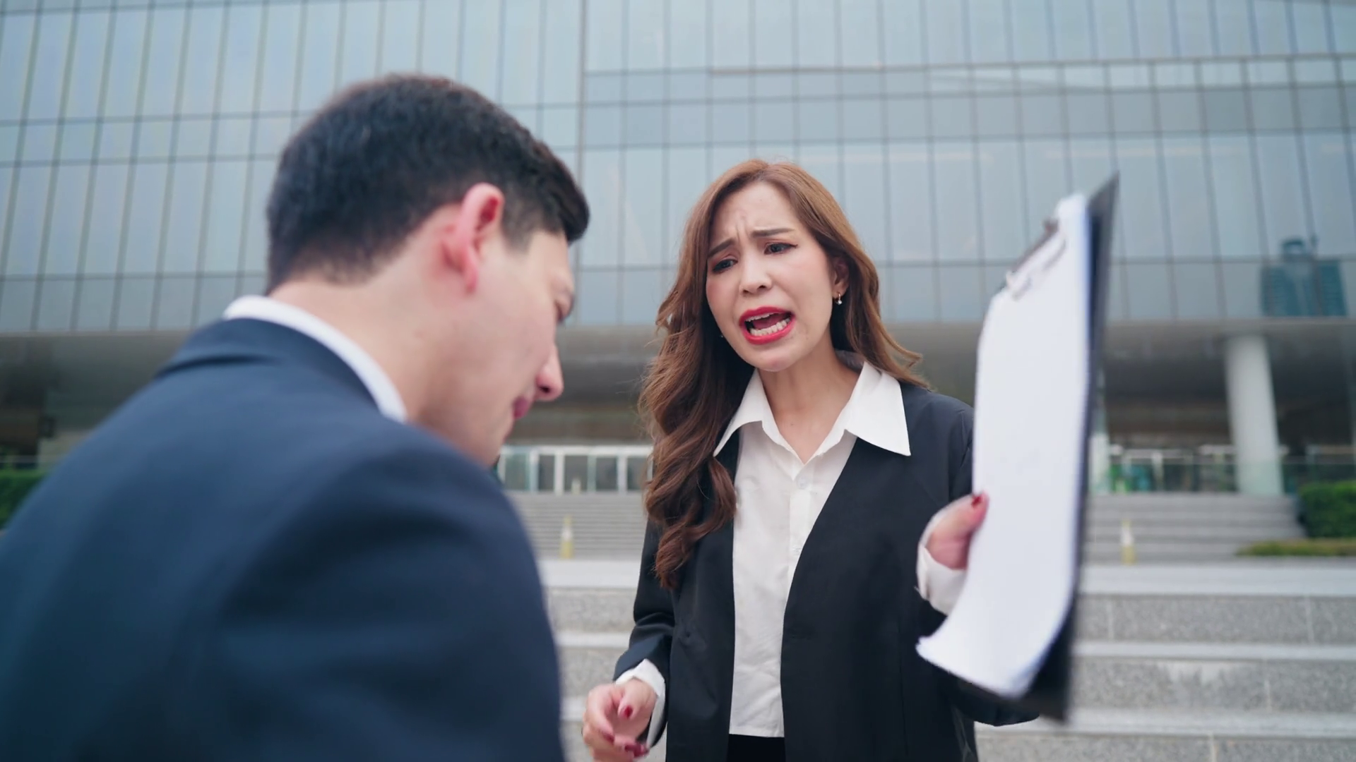 Stressful Company Supervisor Shouting At Her Staff Due To Irresponsible Behavior Strong Asian Female Manager Yelling Giving Negative Comments Angry Frustrated Unsatisfied Boss Displeased UnhappyÂ