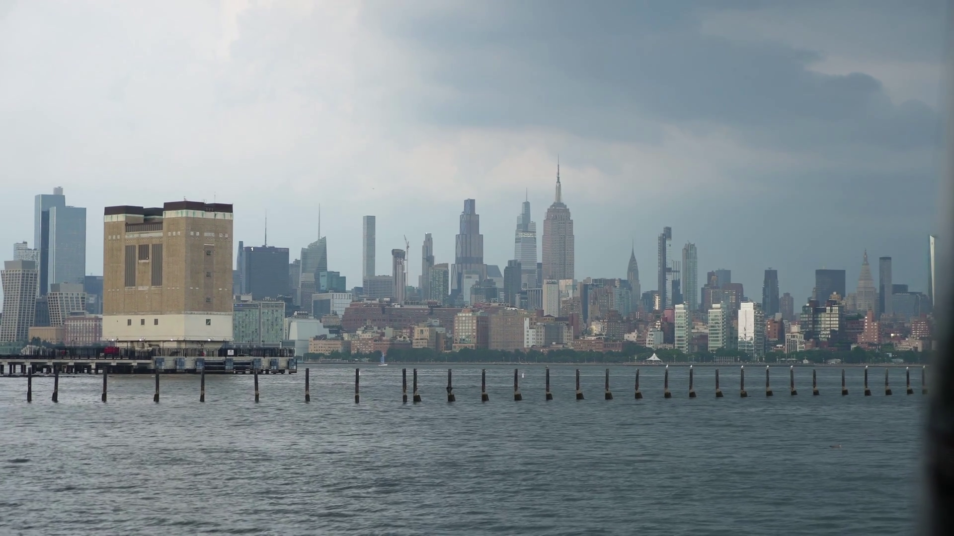 Stunning And Captivating View Of The Iconic Nyc Skyline Showcasing The Empire State Building Under Looming Stormy SkiesÂ