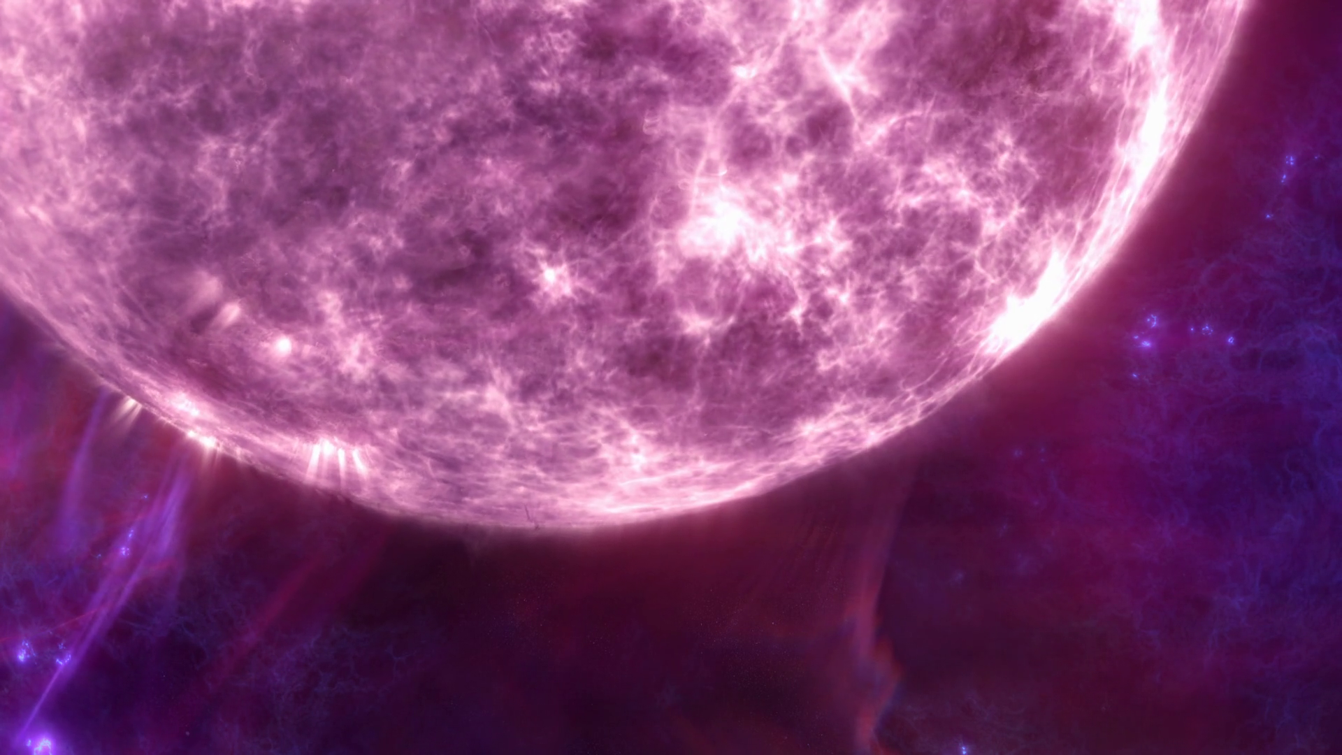 Super Massive White Star Erupting Solar Flares Closeup 3d Animation Concept Of Giant Alien Sun And Purple And Black Hostile Dark Matter Space Nebula Hyperrealistic Celestial Supernova Plasma Burst