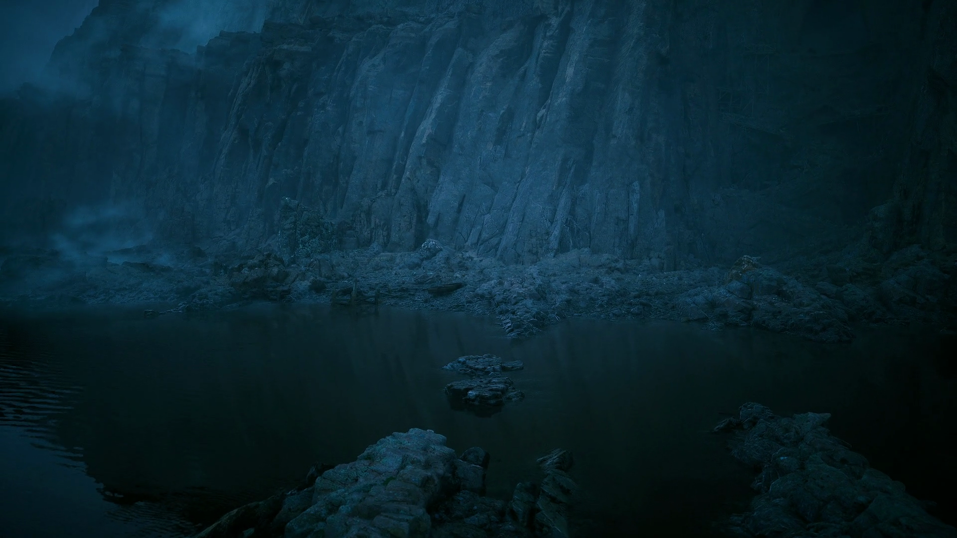 Suspenseful Scene With Hidden Diver Amidst Stormy Atmosphere