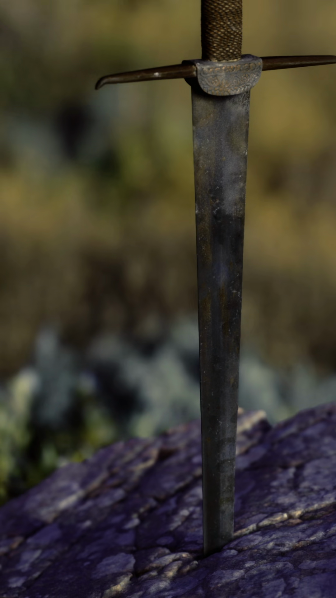 Sword Embedded In A Rock Among Natural Greenery At DuskÂ