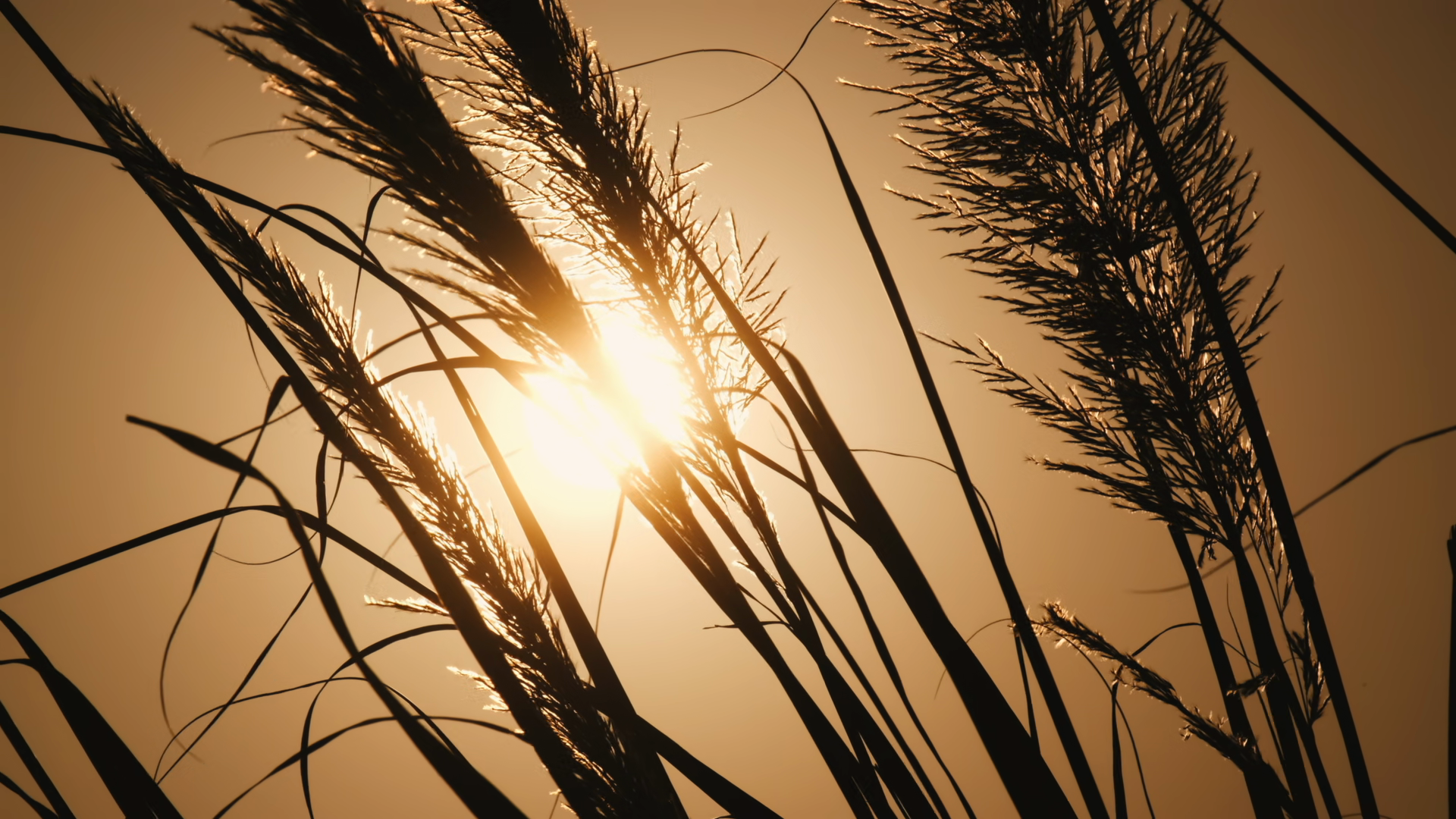 Tall Dry Grass Reeds Swaying In The Wind Against A Bright Golden SunsetÂ