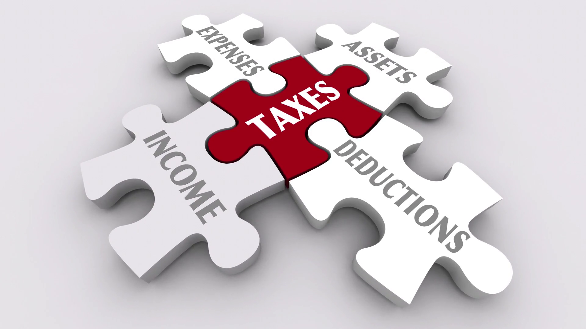 Taxes Earnings Income Expenses Deductions Puzzle Pieces 3 D Animation
