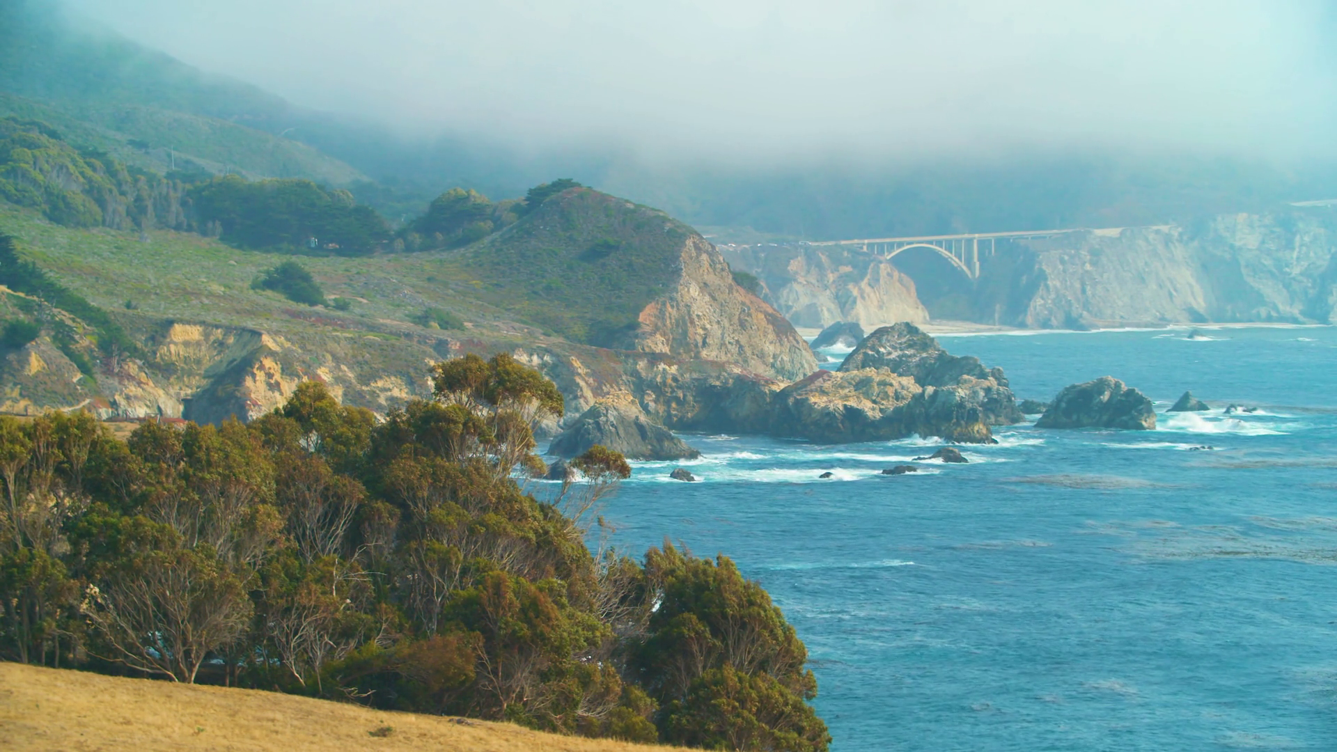 Telephoto Bixby Creek Bridge And Cliffs Tower Above The Pacific At Big SurÂ