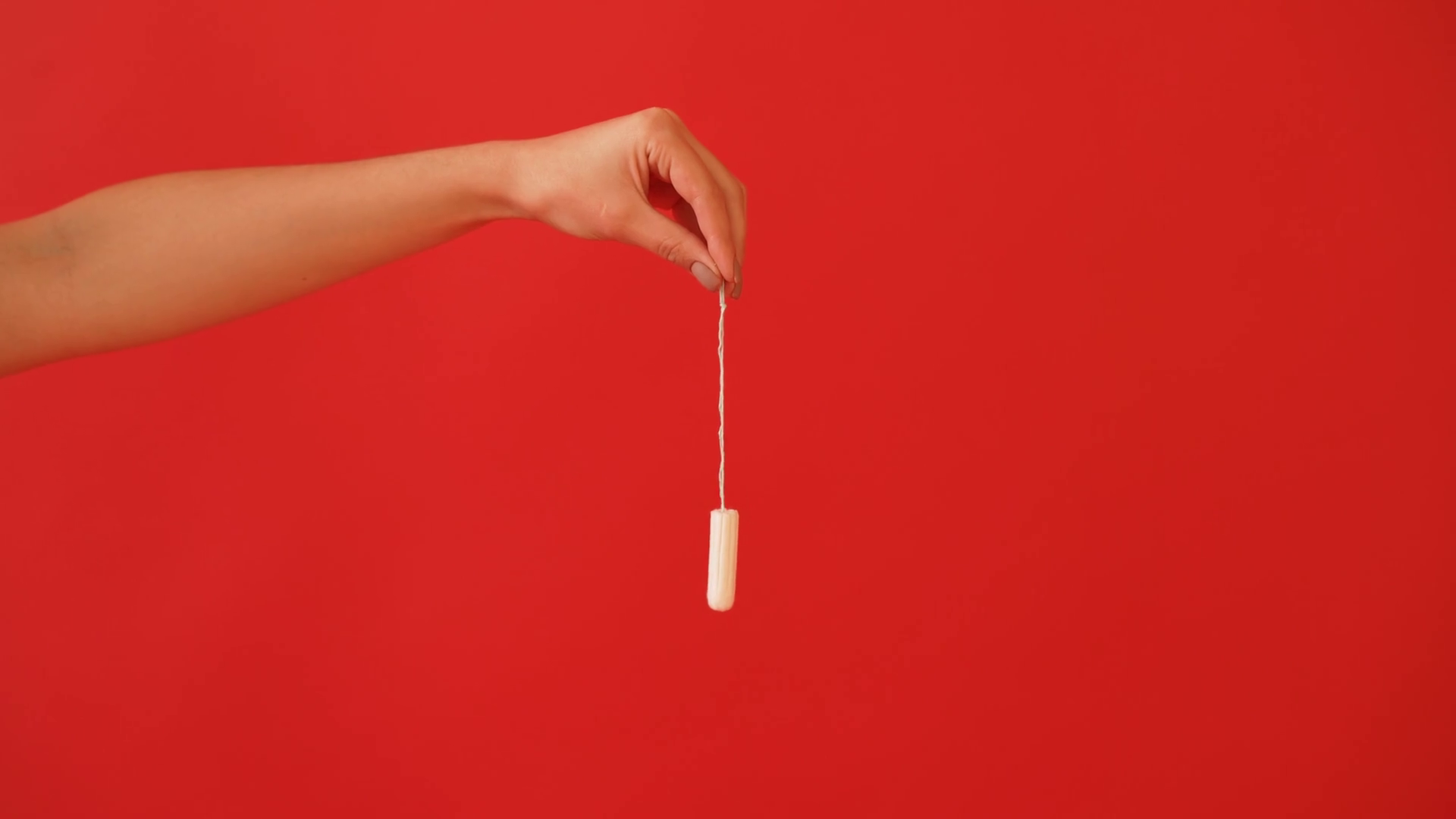 The Concept Of Menstruation Ovulation In Girls Girl On A Red Background Holding A Tampon GasketÂ