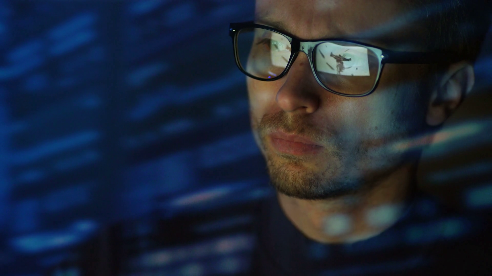 The Face Of The Thinking Man In Glasses Evening Night TimeÂ