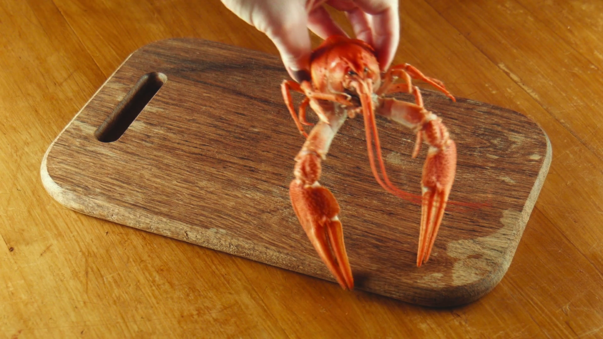 The Female Puts Crayfish Of Lobsters On A Tray On A Lettuce LeafÂ