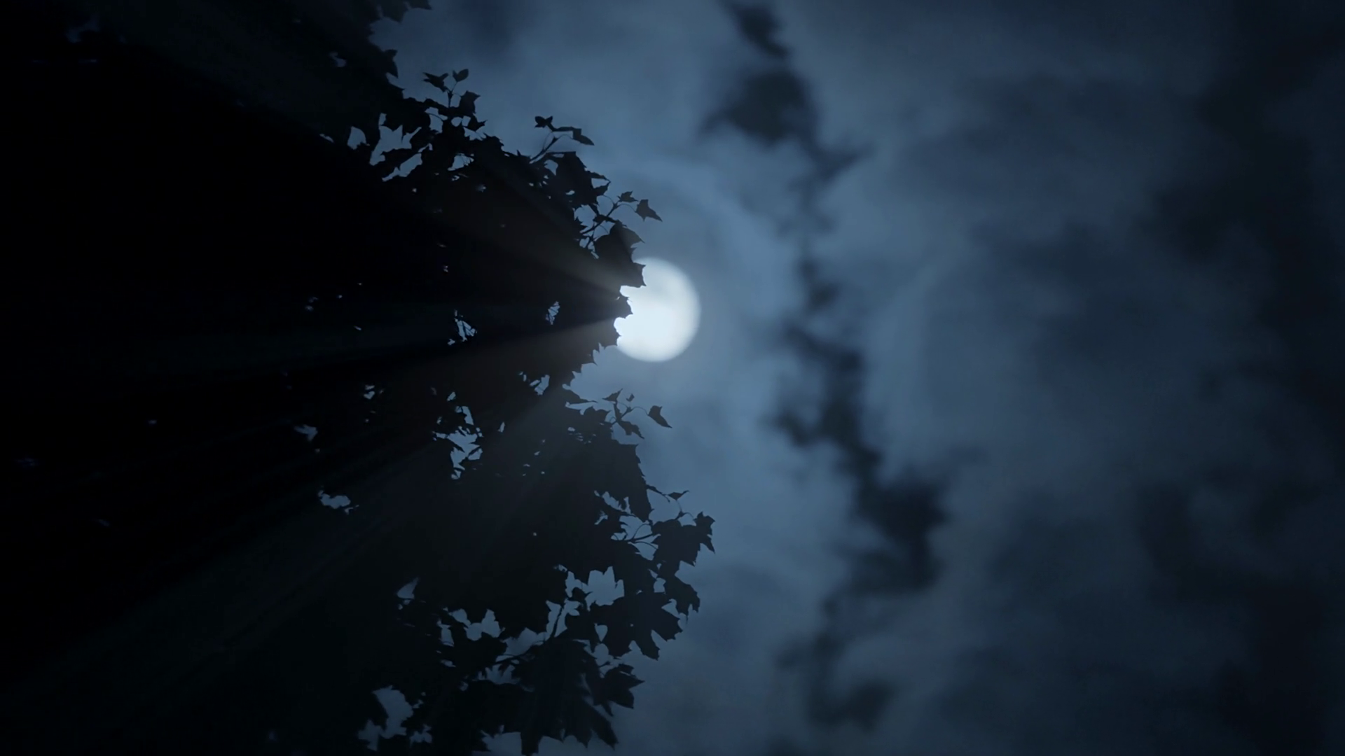 The Full Moon Is Illuminating The Night Sky Peeking Through The CloudsÂ