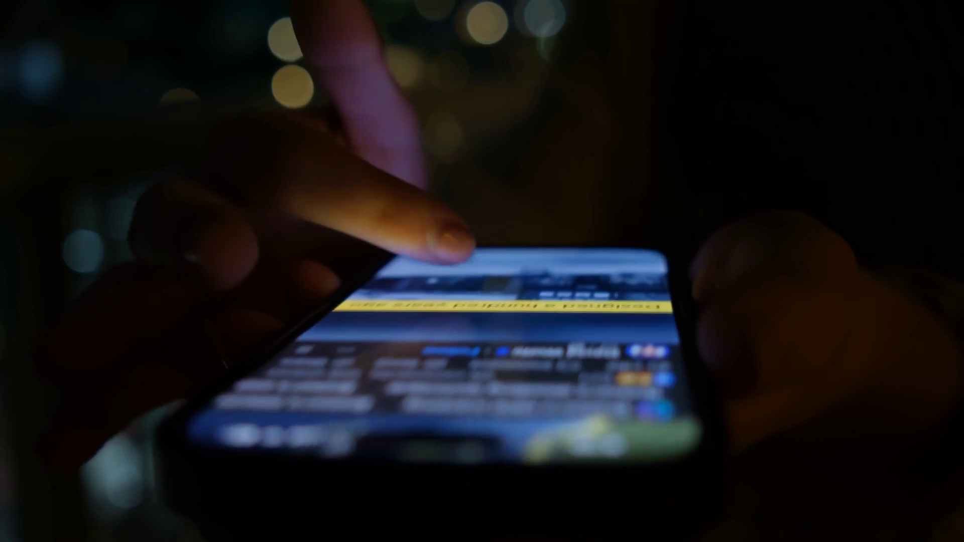 The Woman Using Smartphone Scrolling On Phone Screen On Balcony At Night City View From Balcony With Phone MockupÂ