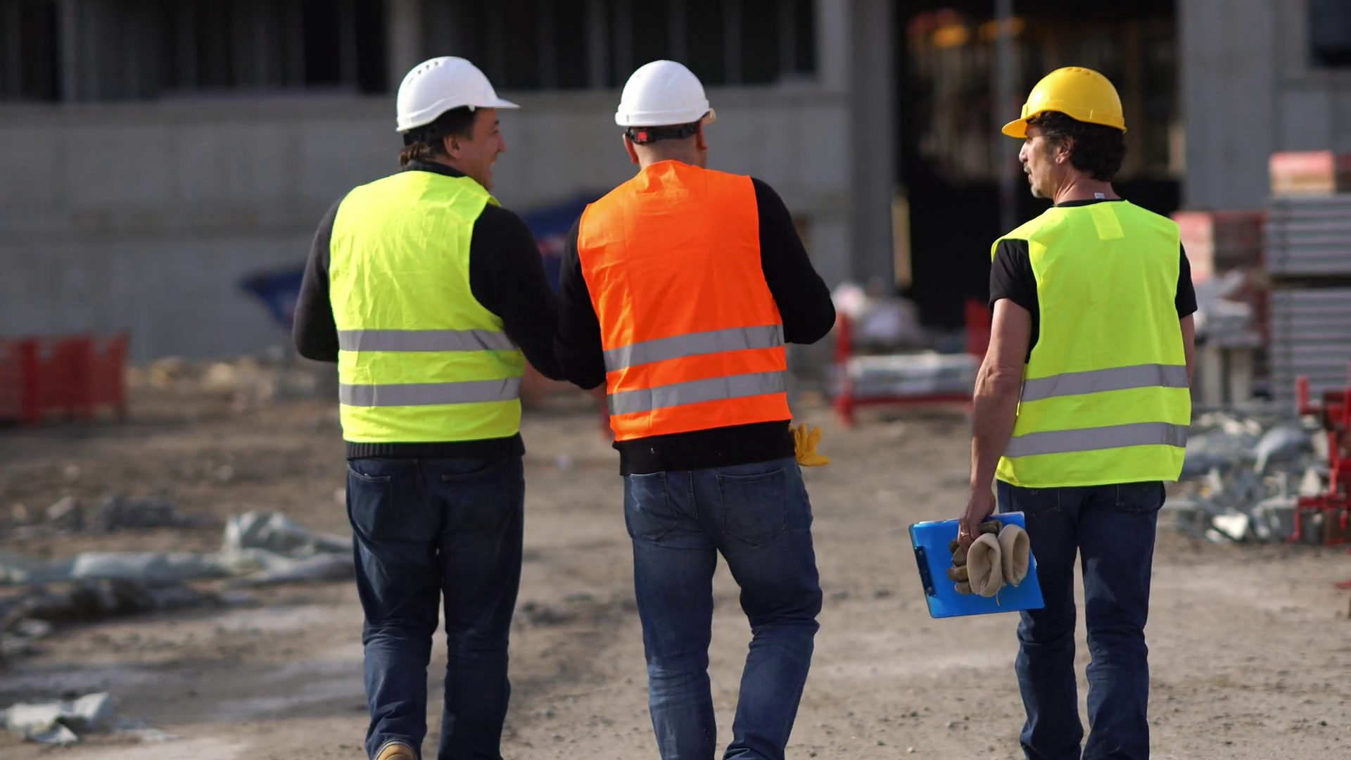Three Civil Engineers At The End Of Their Work Shift On Construction SiteÂ