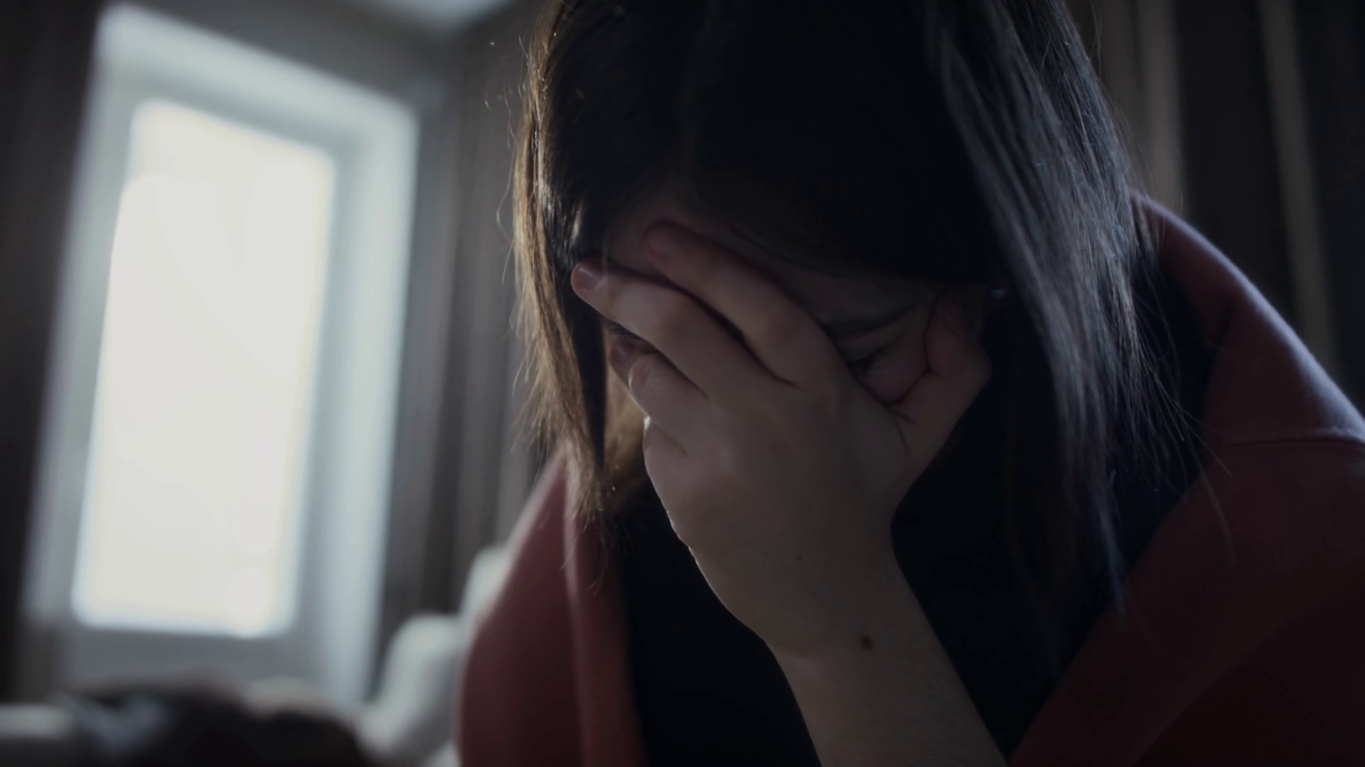 Tilting Closeup Of Teenage Schoolgirl Sitting At Home Suffering Doing Cyberbullying After Reading Messages On Smartphone Covering Face And Crying Unable To Concentrate On HomeworkÂ