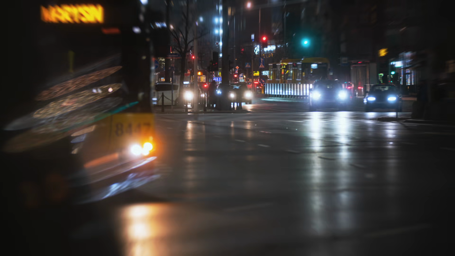 Timelapse Traffic Jam On Busy Street Yellow Trams Buses And Cars Moving Fast In Big City In Evening Night Timelapse Downtown Roadway Rush Hour Drive Way Lights Motion Urban Life TransportationÂ