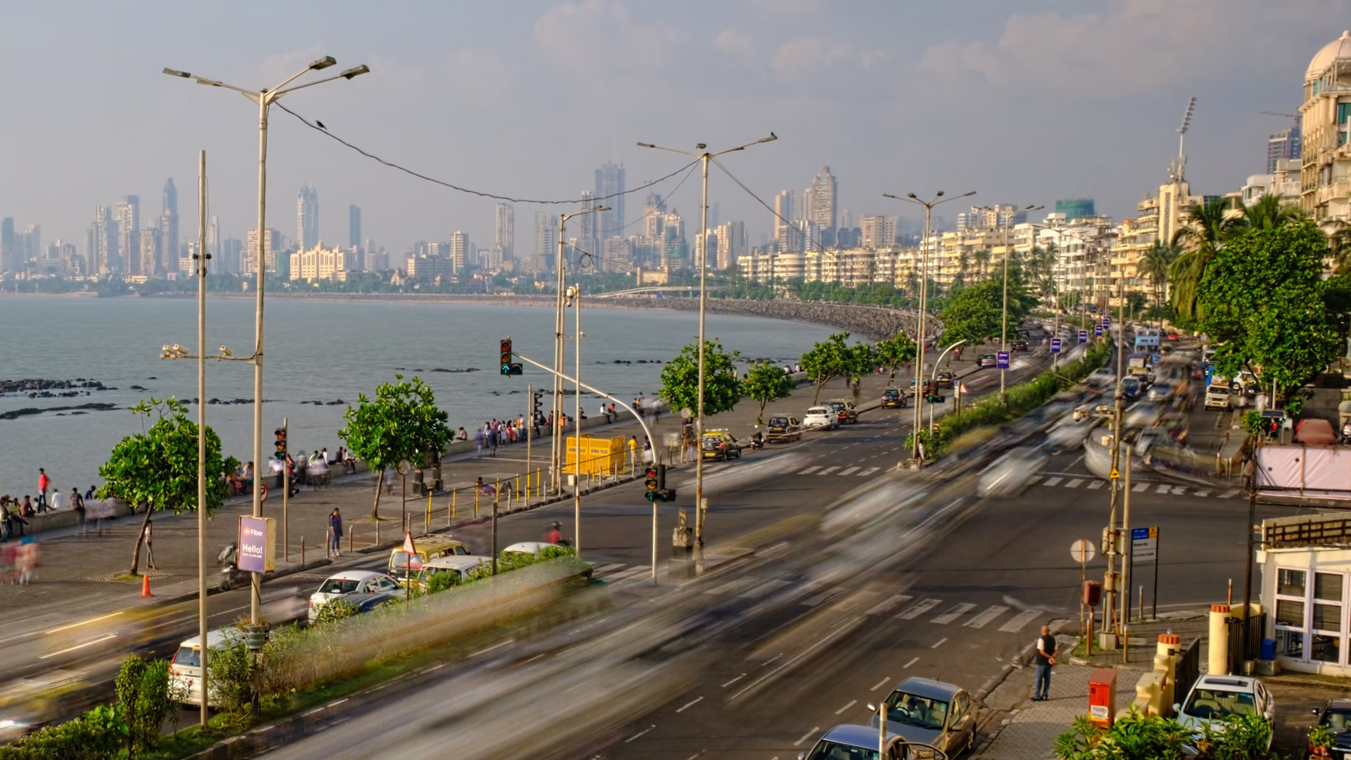 Timelapse Of Marine Drive Traffic With Cars Mumbai Maharashtra IndiaÂ