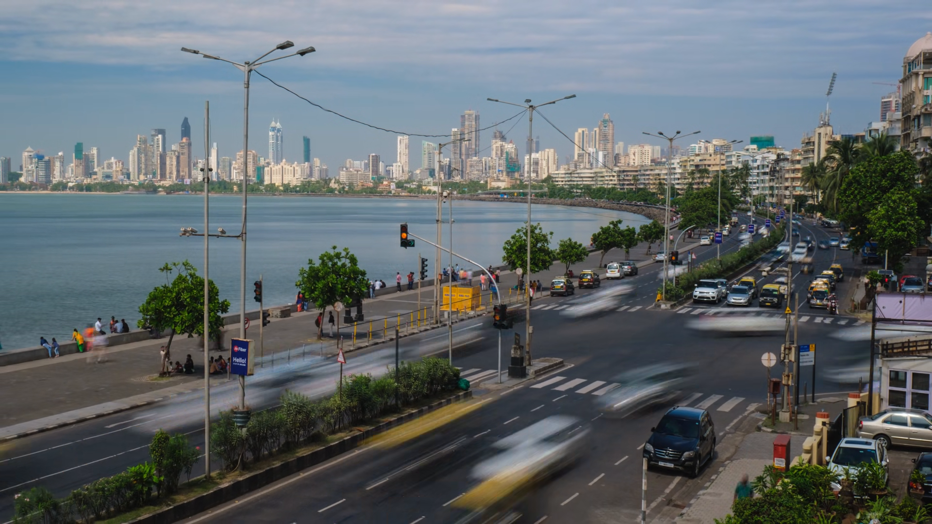 Timelapse Of Marine Drive Traffic With Cars Mumbai Maharashtra IndiaÂ