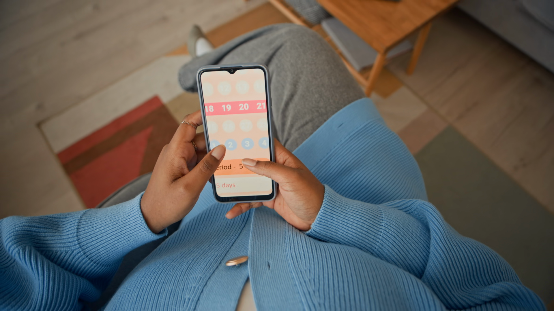 Top Cropped Shot Of Unrecognizable Woman Checking Menstrual Period In App On Smartphone While Sitting In Living RoomÂ