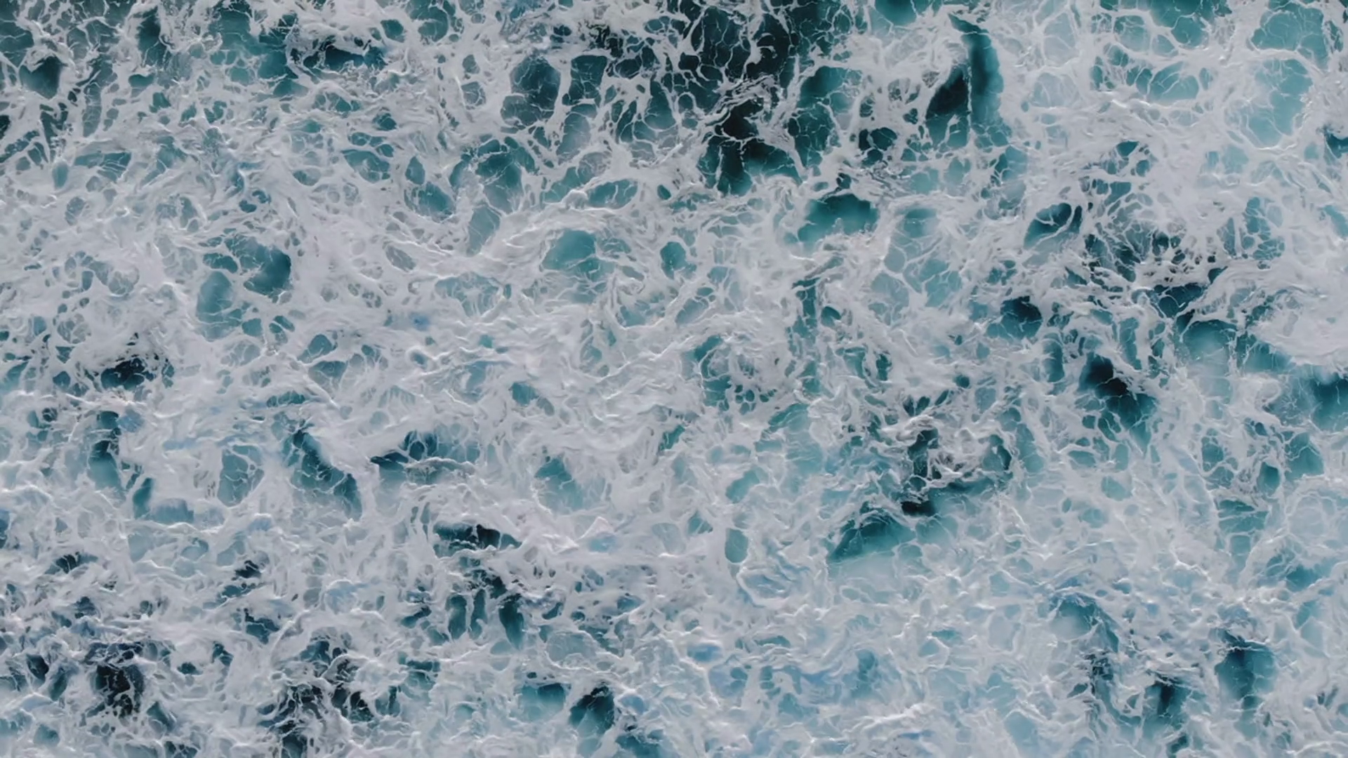 Top Down Aerial View From Above Of Dark Foam White Ocean Waves Foaming On Empty Sand Tropical Beach With Big Rock Stones Birds Eye AerialÂ
