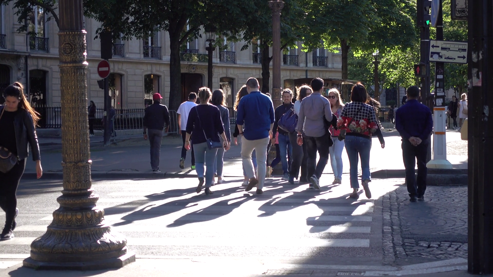 Traffic And Pedestrians People Walking Down The Street On The Street Champs Elysees In Paris Summer DayÂ