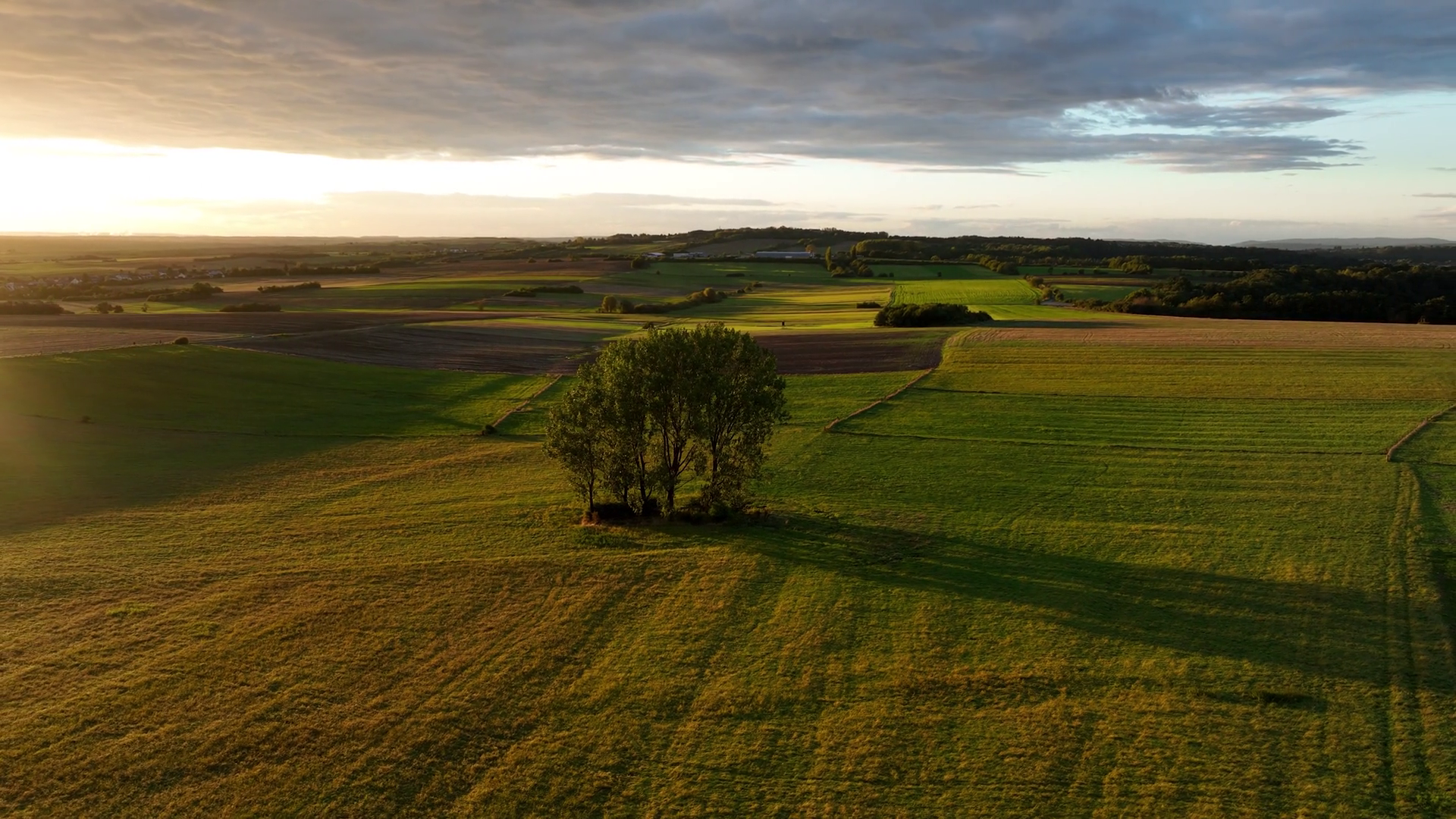 Tree In Hilly Landscape At Sunset Golden HourÂ