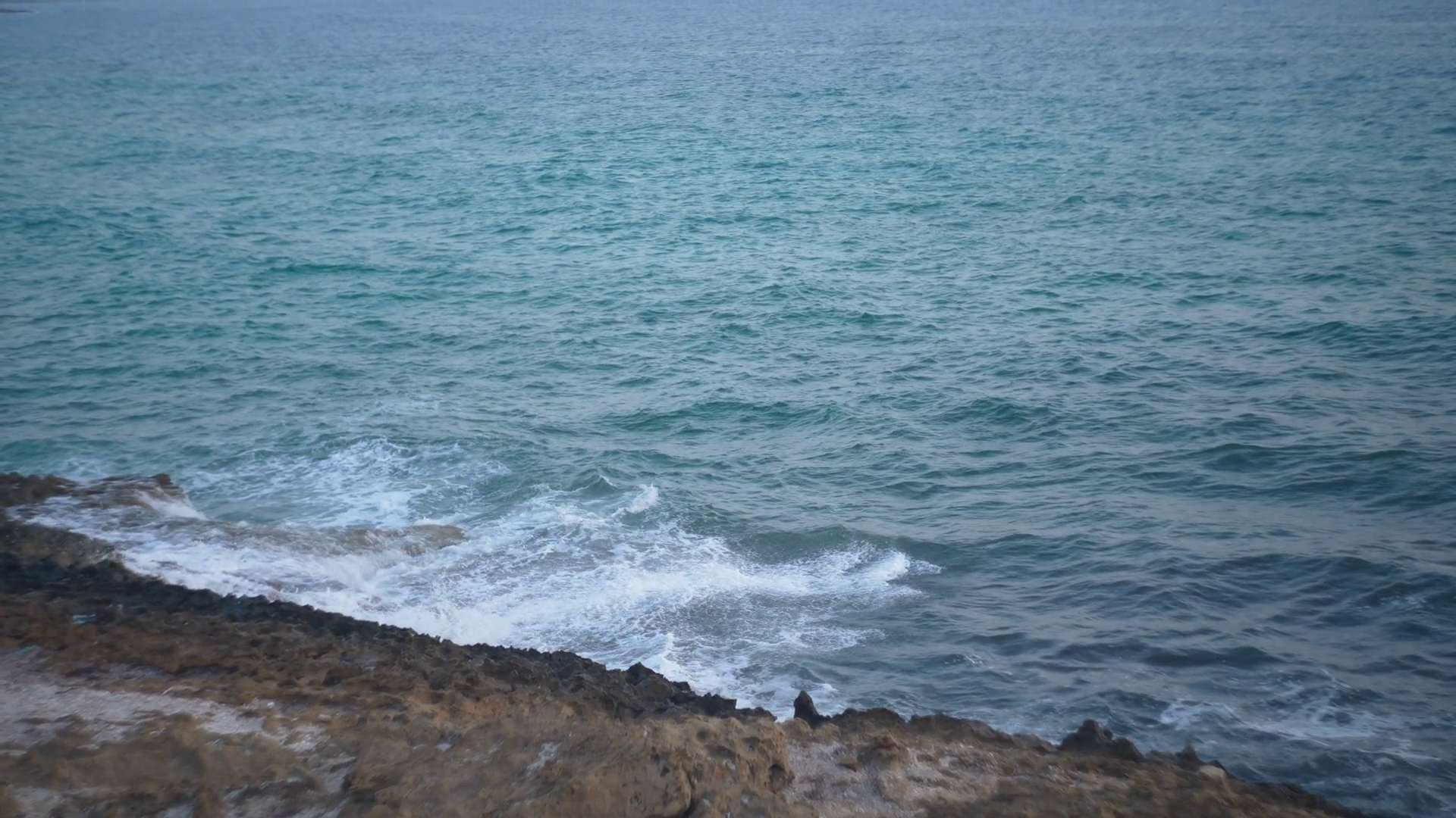 Turquoise Blue Mediterranean Sea Waves Splashing With White Foam On Rocky Coast Outdoors Azure Oceanic Waters Rolling And Crashing On Coastline Slow MotionÂ