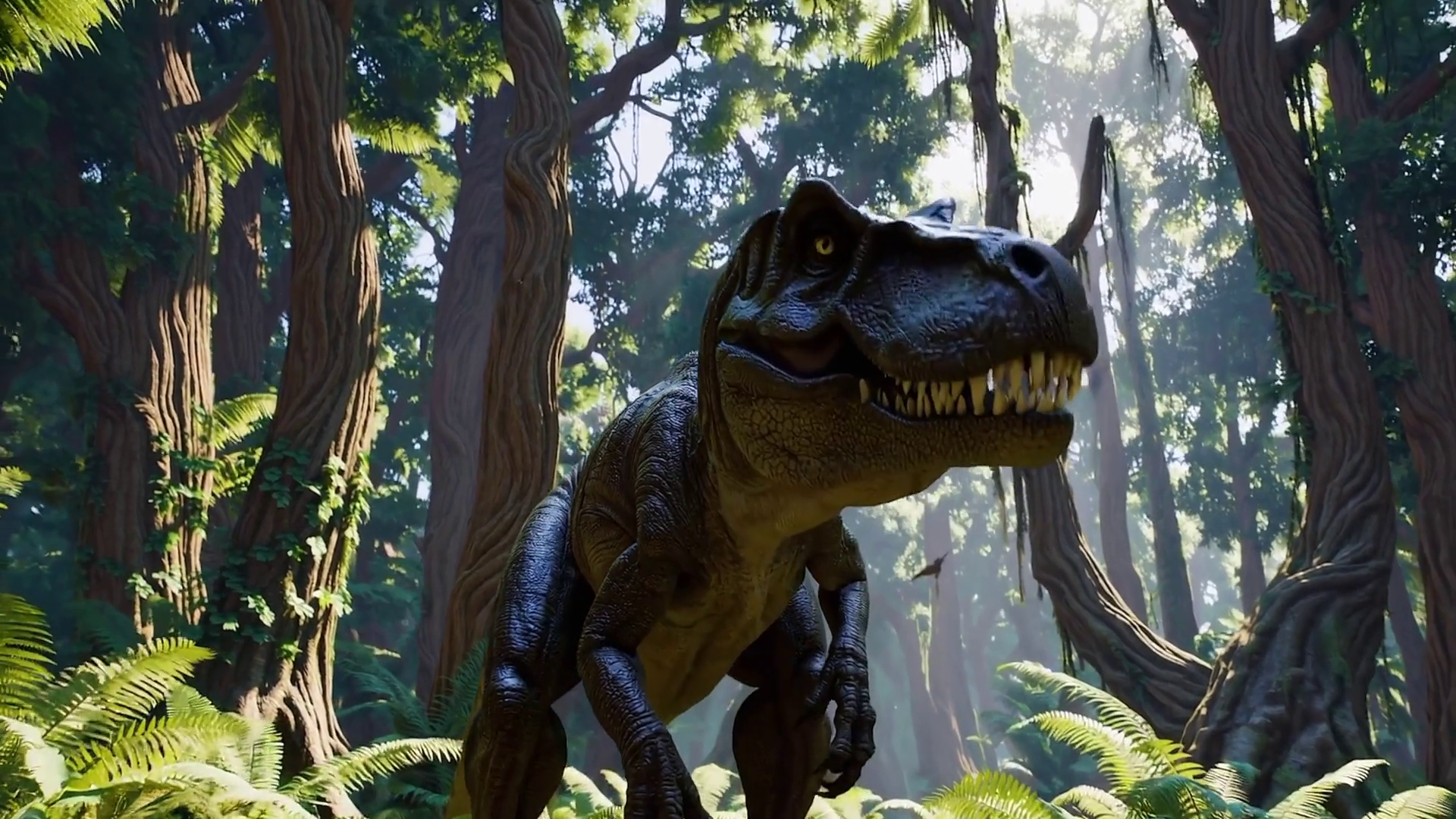 Tyrannosaurus Rex Dinosaur In Dense Cinematic Prehistoric ForestÂ