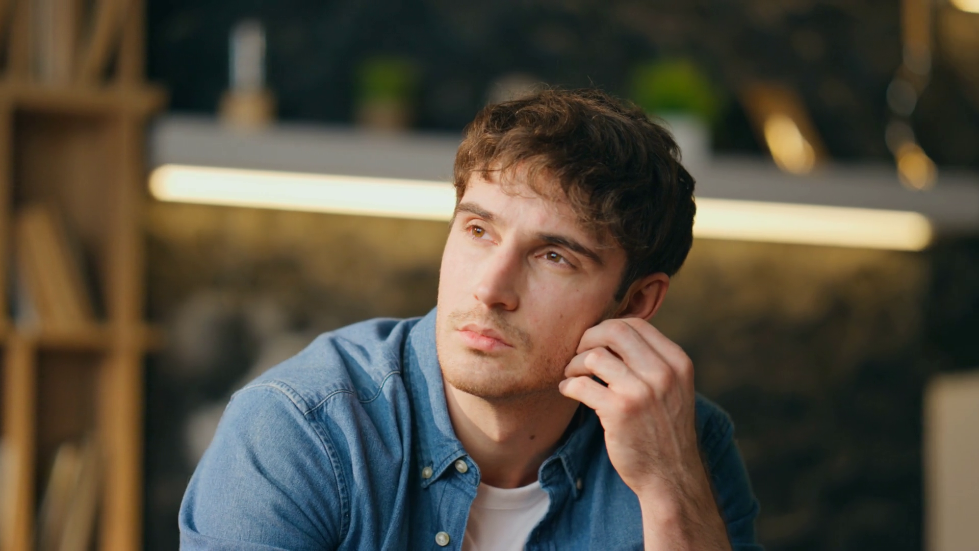 Unmotivated Freelancer Sitting Home Living Room Looking In Distance Closeup Portrait Of Tired Thoughtful Remote Worker Taking BreakÂ