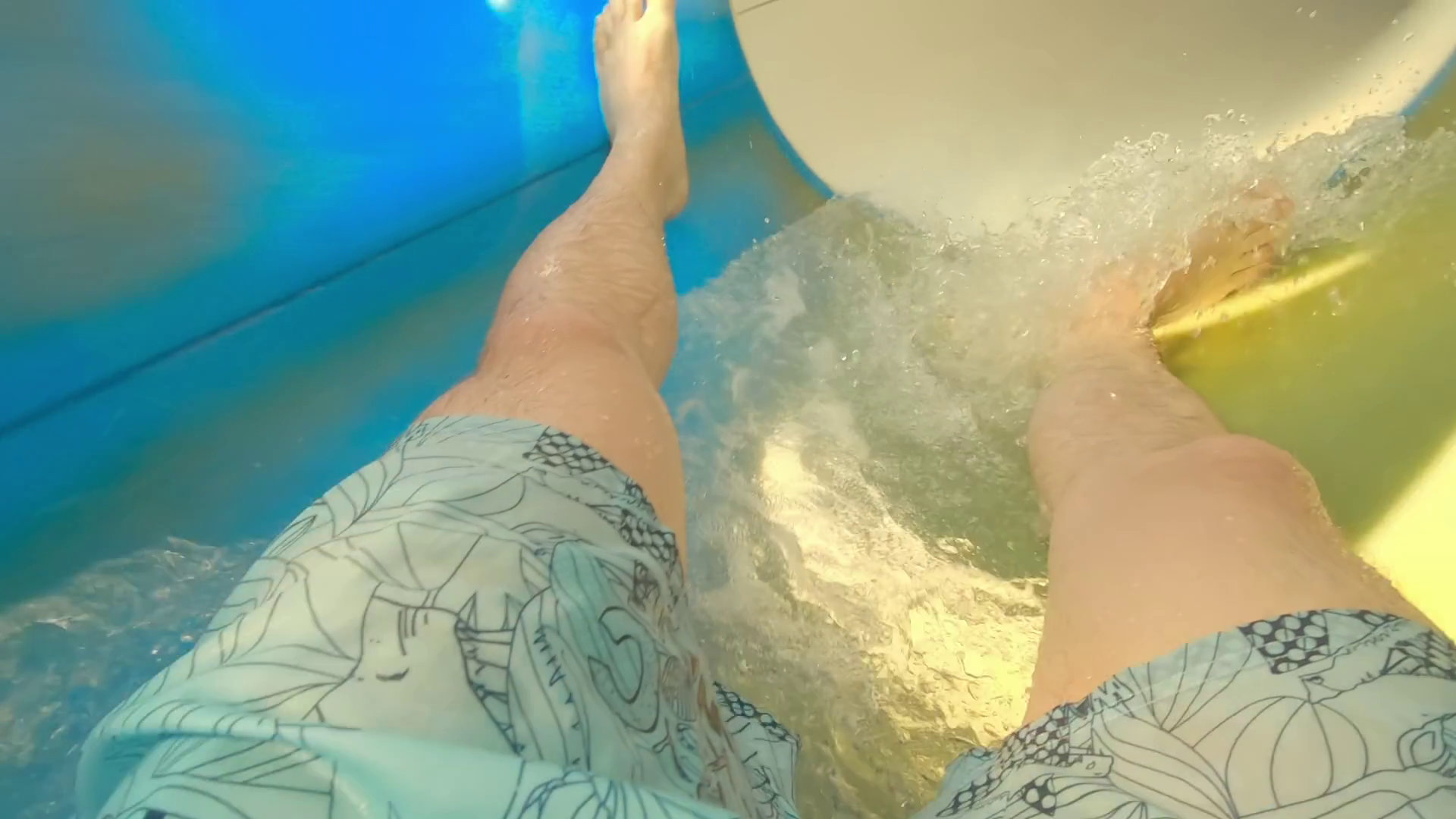 Unrecognizable Man Ride Water Tube Slide Speed Water Attraction Slider Travel Down Slide Very Quickly Warm Weather In Recreational WaterparkÂ