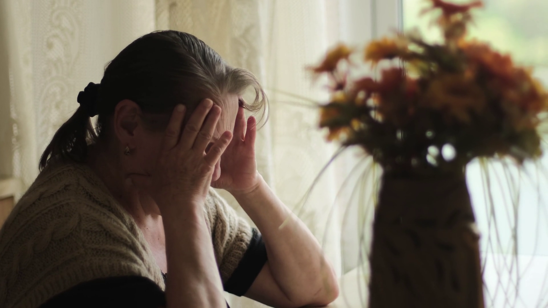 Upset Elderly Woman With Headache Clutching Her Head With Her HandsÂ