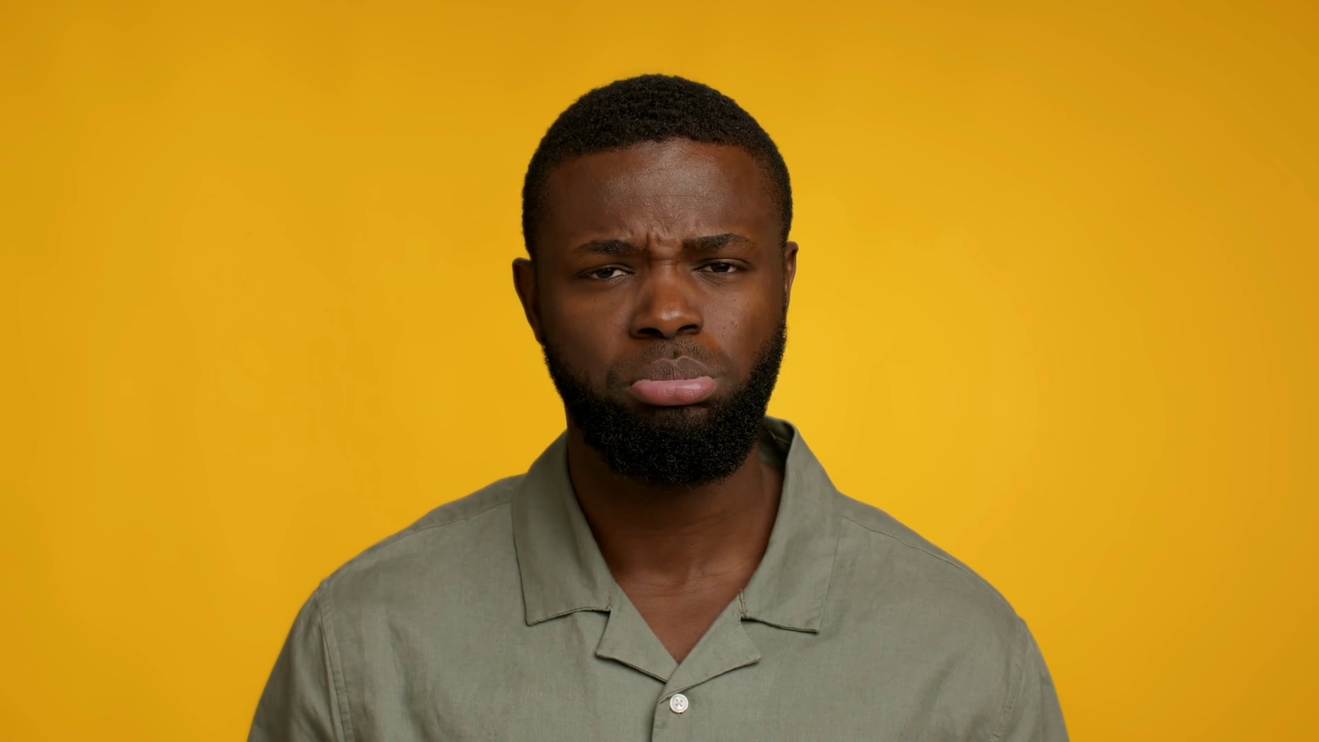 Upset Young Man Pouting Lip And Looking At CameraÂ