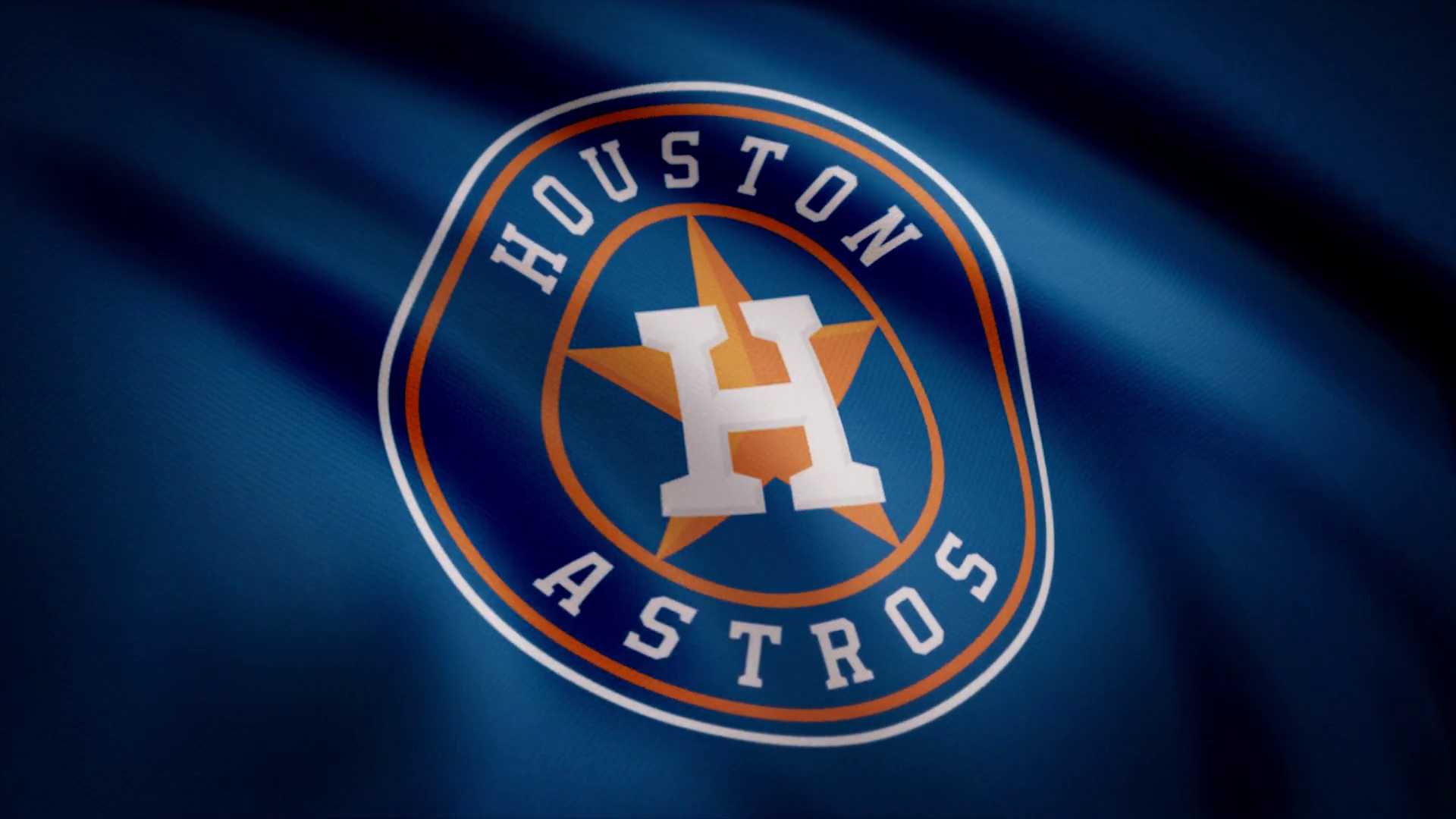 Usa New York 12 August 2018 Waving Flag With Houston Astros Professional Team Logo Closeup Of Waving Flag With Houston Astros Baseball