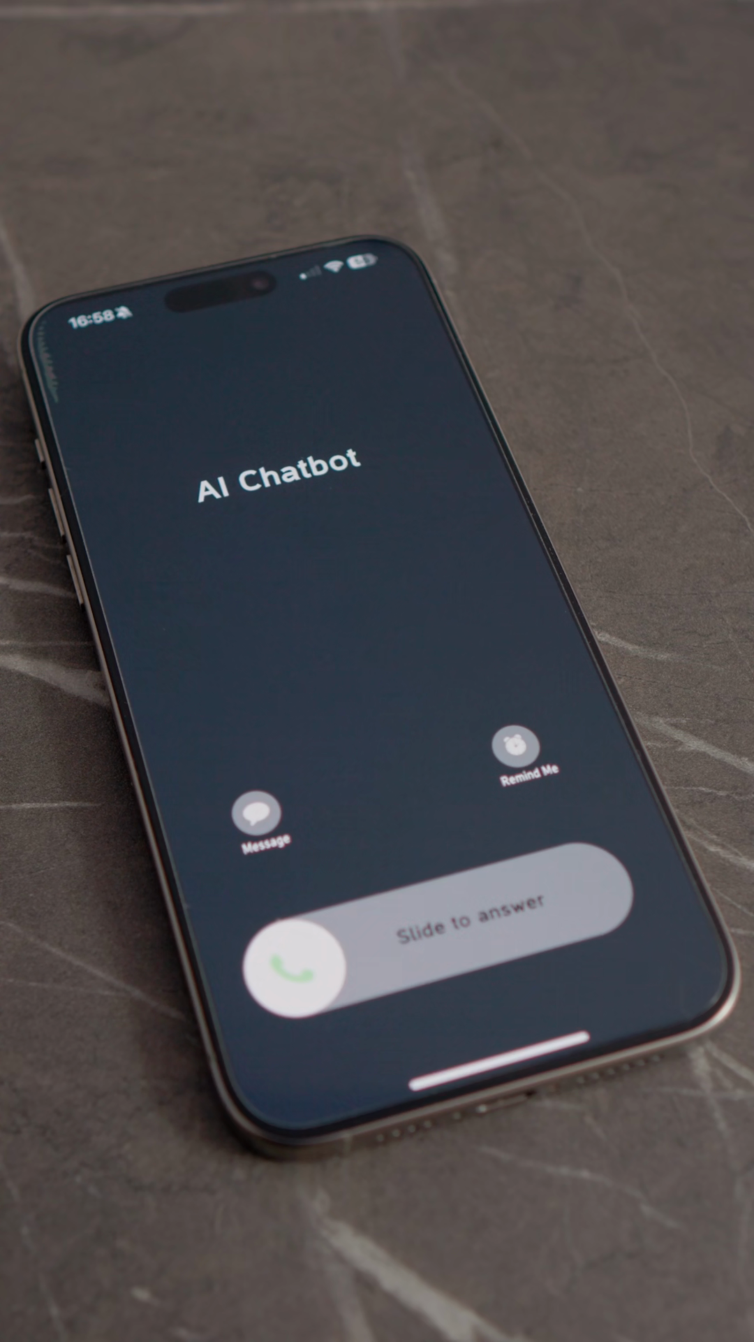 Vertical Screen A Closeup Shows A Smartphone Receiving An Incoming Call From An Ai Chatbot The Phone Is Placed On A Table With A Simple BackgroundÂ