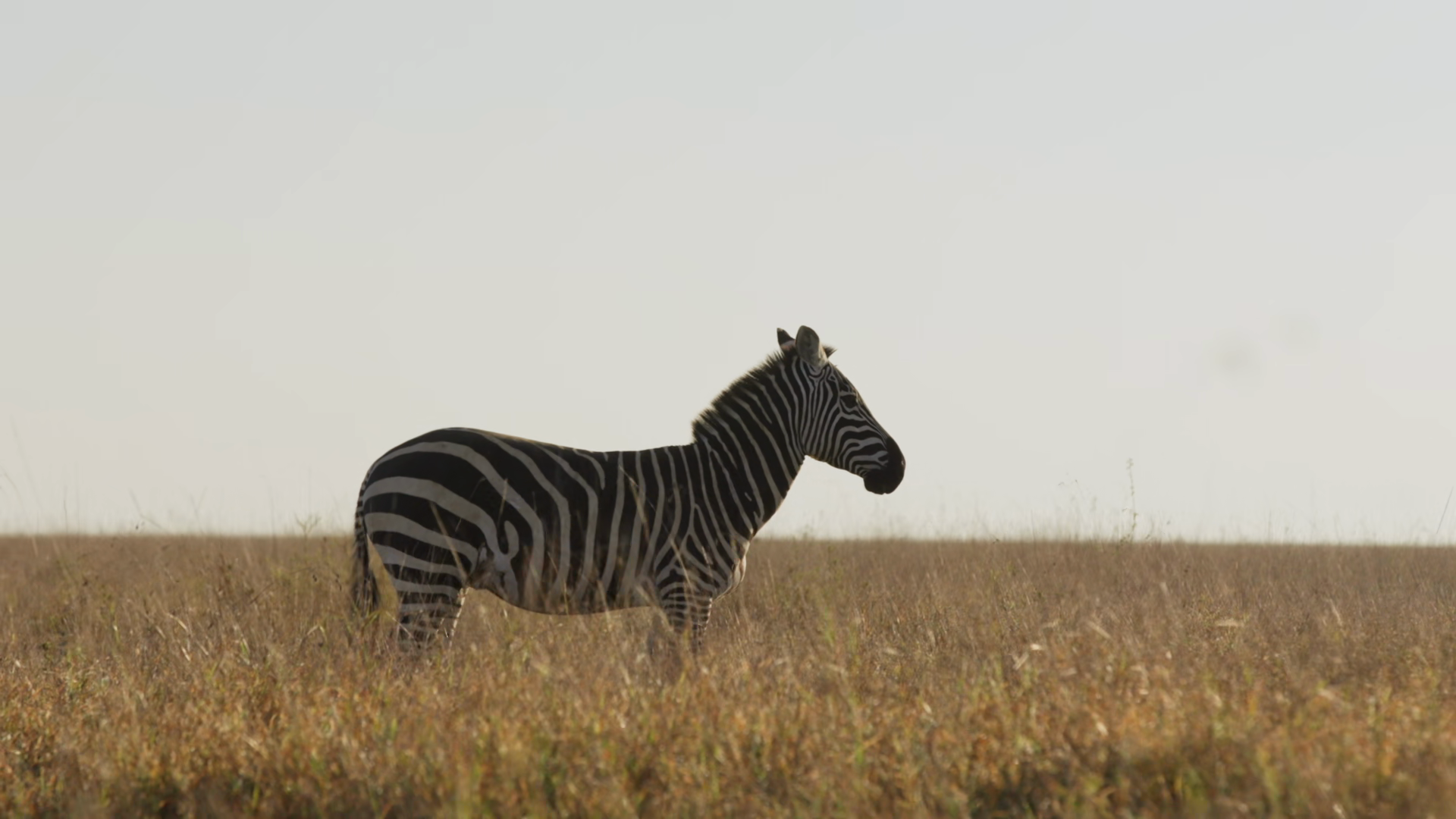 Very Wide Gimbal Parallax Of A Plains Zebra Equus Quagga Standing Still In The Vast Dry Grassland In The Afternoon In KenyaÂ