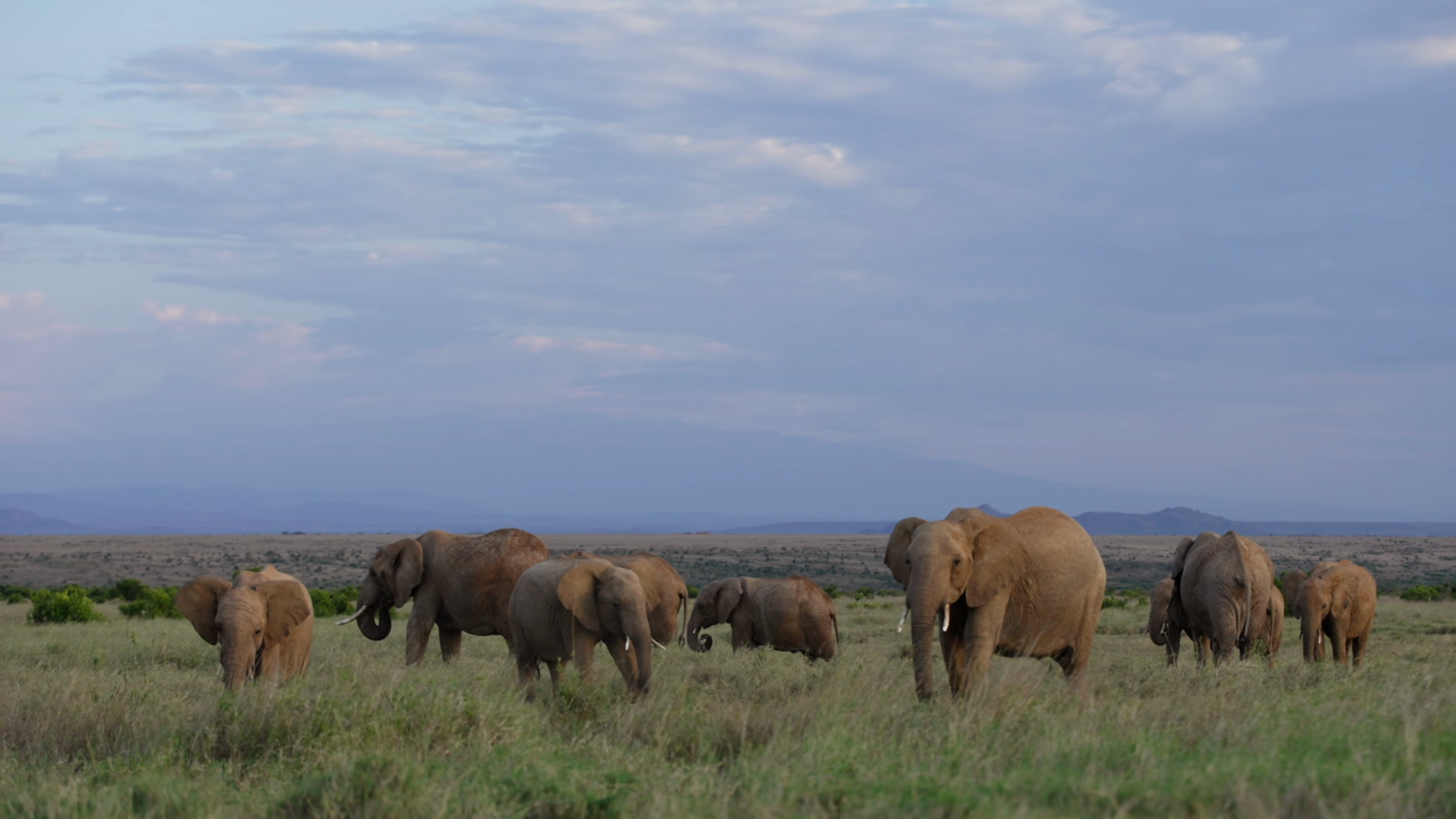 Very Wide Gimbal Parallax Of African Bush Elephants Loxodonta Africana Grazing On Tall Green Grass At Daybreak In KenyaÂ