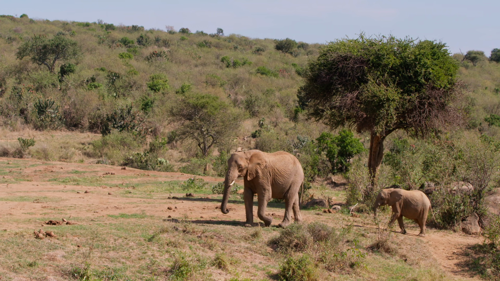 Very Wide Of A Female African Bush Elephant Loxodonta Africana Walking In The Savannah Grassland At Midday In KenyaÂ