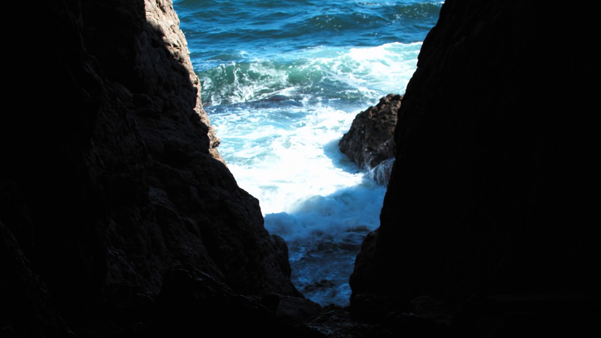 View From The Cave On The Blue Sea And Waves Crashing On RocksÂ