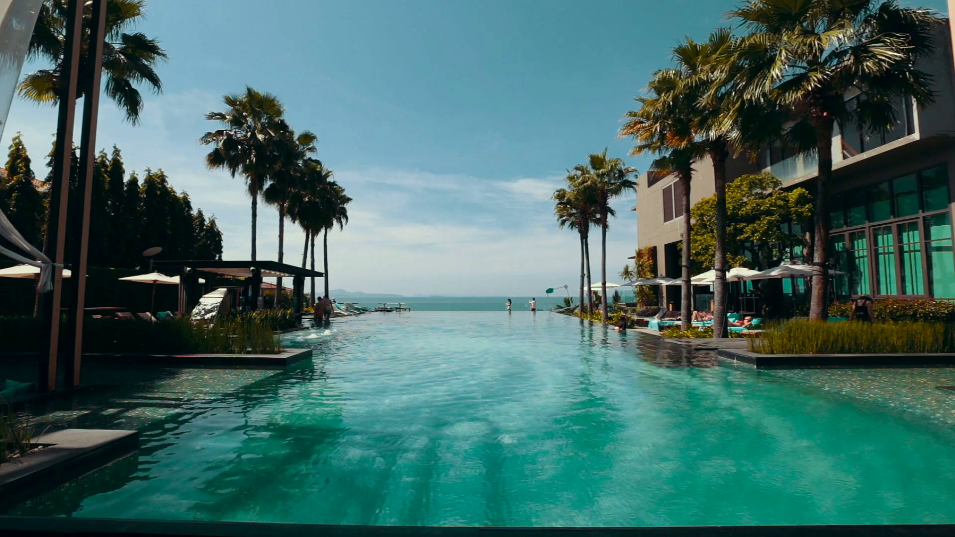 View From The Pool To The Sea Palm Trees Blue WaterÂ