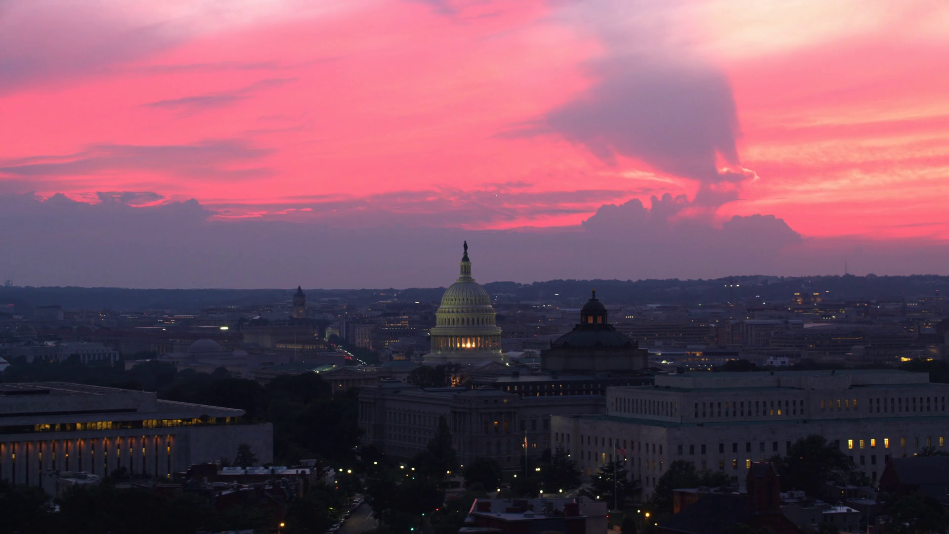 Washington Dc Circa2017 Aerial View Of Capitol Dome And Library Of Congress At Dusk Shot With Cineflex And Red Epicw HeliumÂ