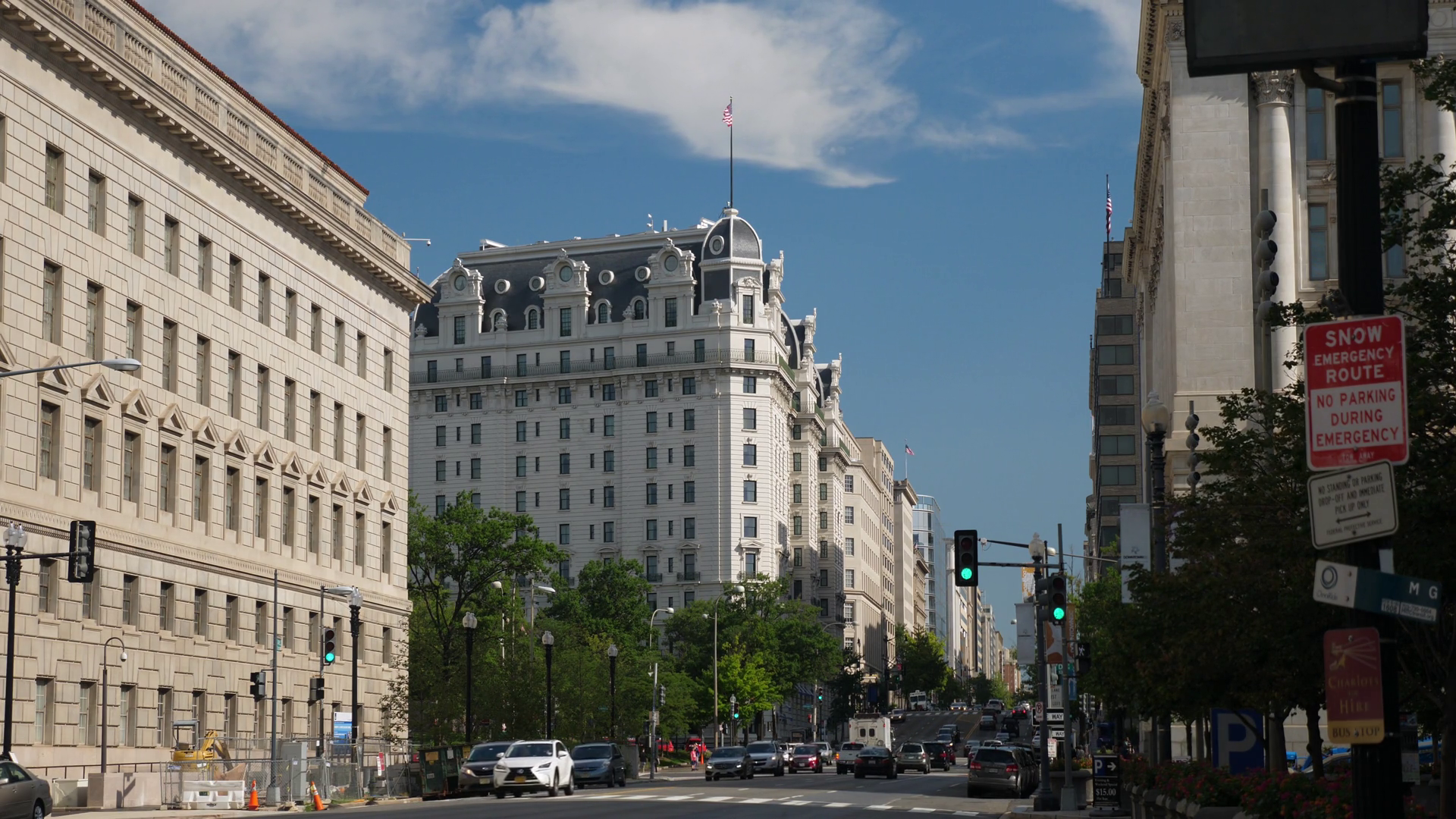 Washington Dc Circa August 2017 A Daytime Summer Exterior Establishing Shot Of Traffic Along 14th Street In Downtown Washington Â