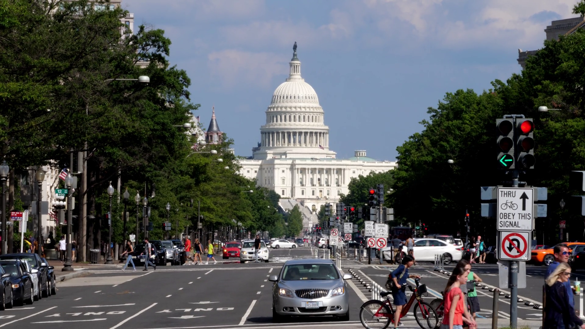 Washington Dc Circa August 2017 A Long Establishing Shot Of The Capitol Dome On Capitol Hill As Seen From Pennsylvania Avenue Shot In 5k Â