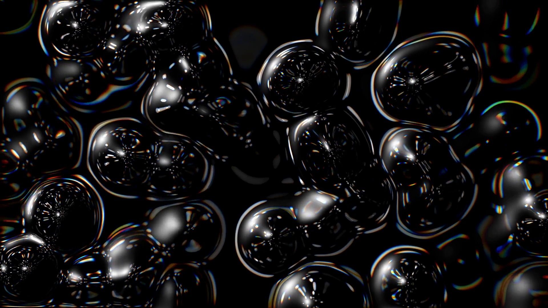 Water Droplets Joining And Separating Against A Black Background As Viewed Under Bright Lights