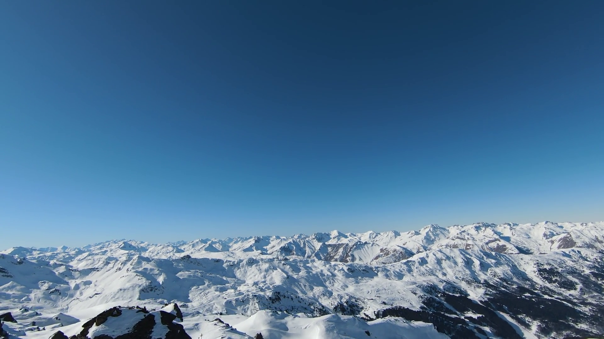 Aerial View Fast Fpv Drone Fly Over Beautiful Snowy Alpine PeaksÂ
