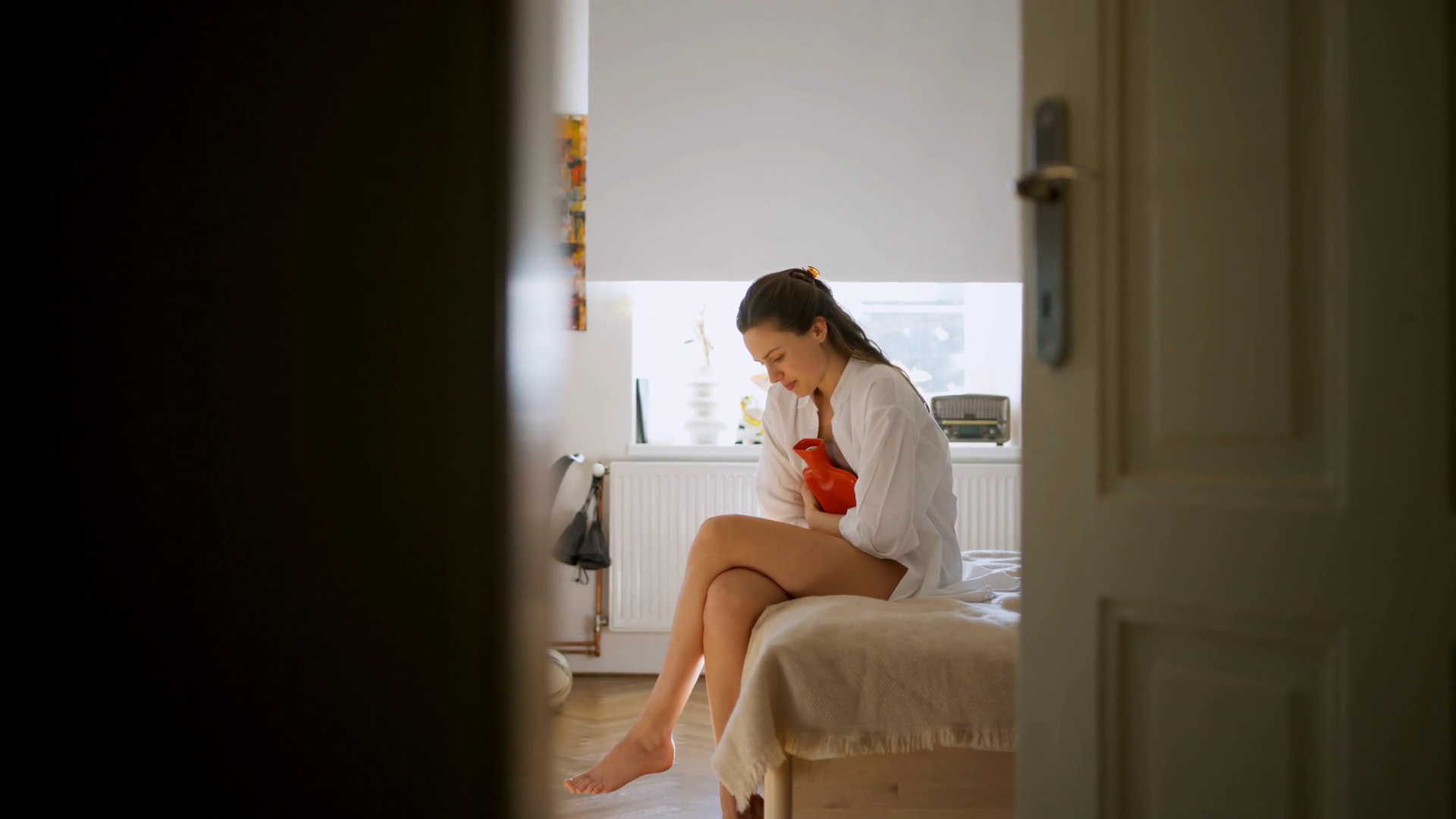 Woman At Home Suffering From Menstrual Pain Having Cramps Woman Warming Lower Abdomen With A Hot Water Bottle Endometriosis AndÂ