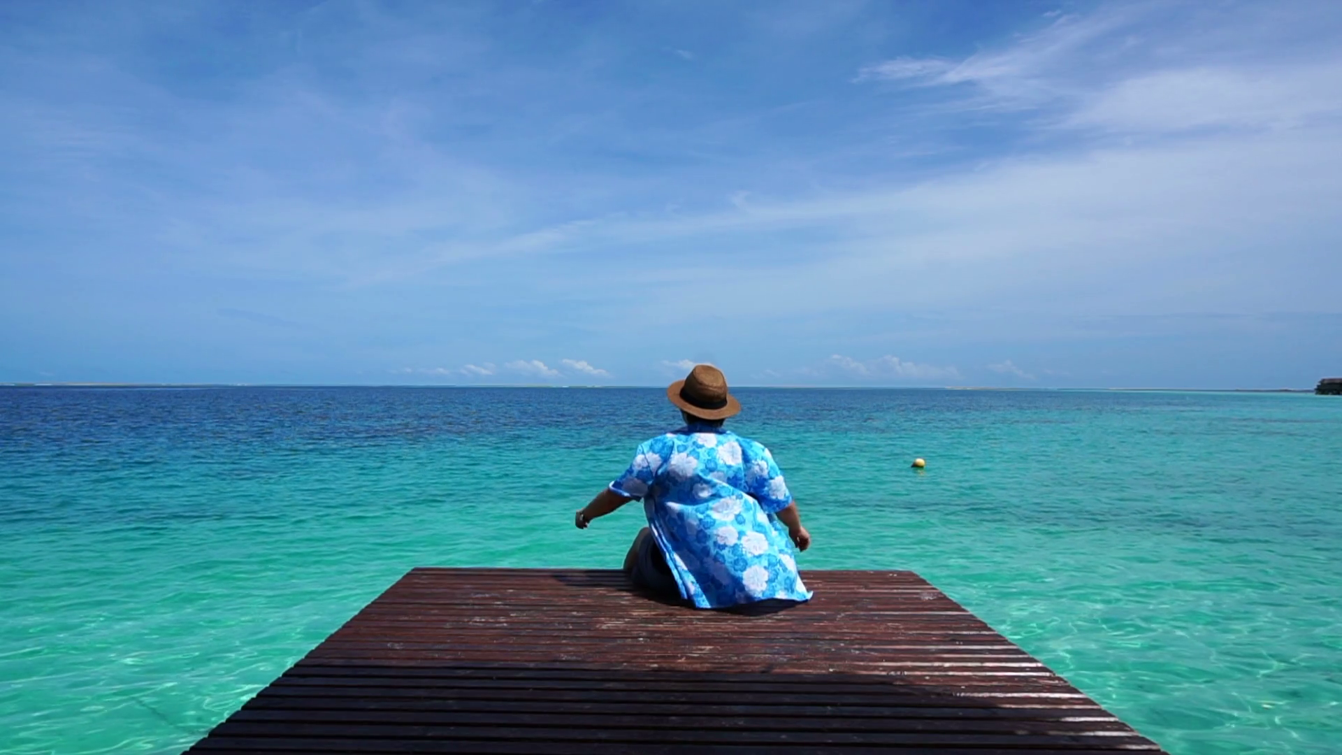 Woman Back Relaxing Looking At Turquoise Paradise Island Ocean On Wood DeckÂ